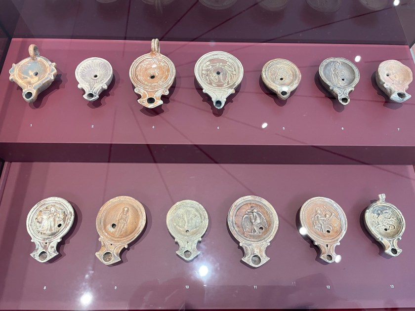 These Roman-era glass bottles reminded me of the tear catchers we saw last year in Jerusalem.