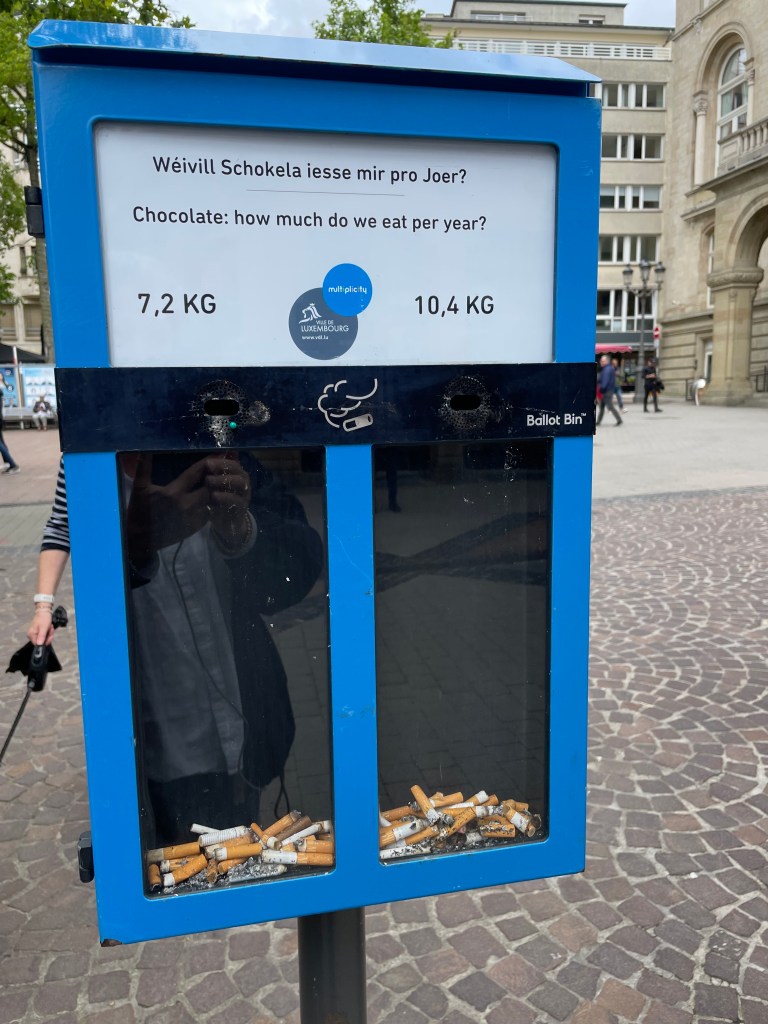 Here’s an interesting way of polling in the main plaza–cast your cigarette butts here: