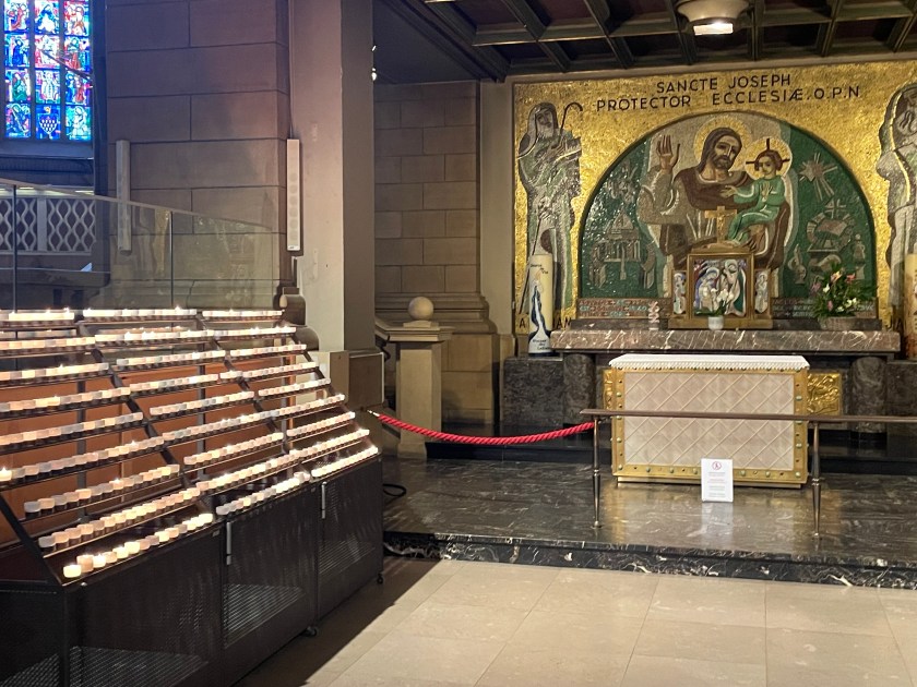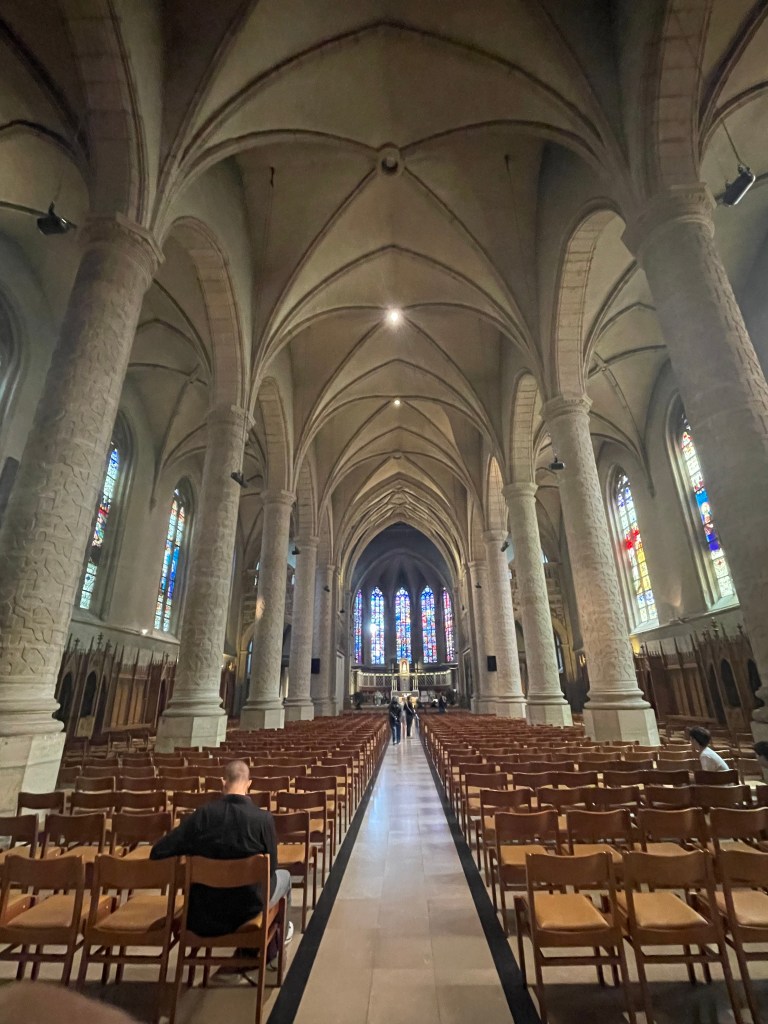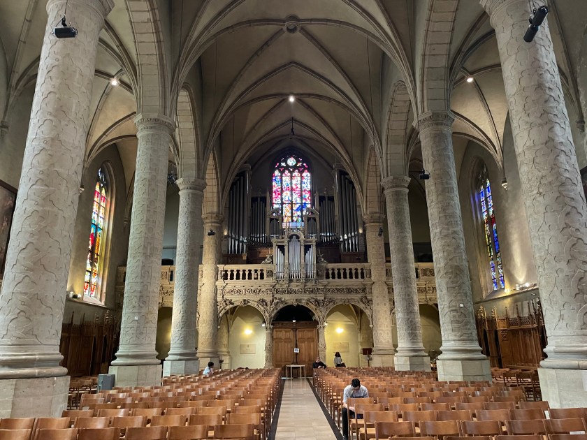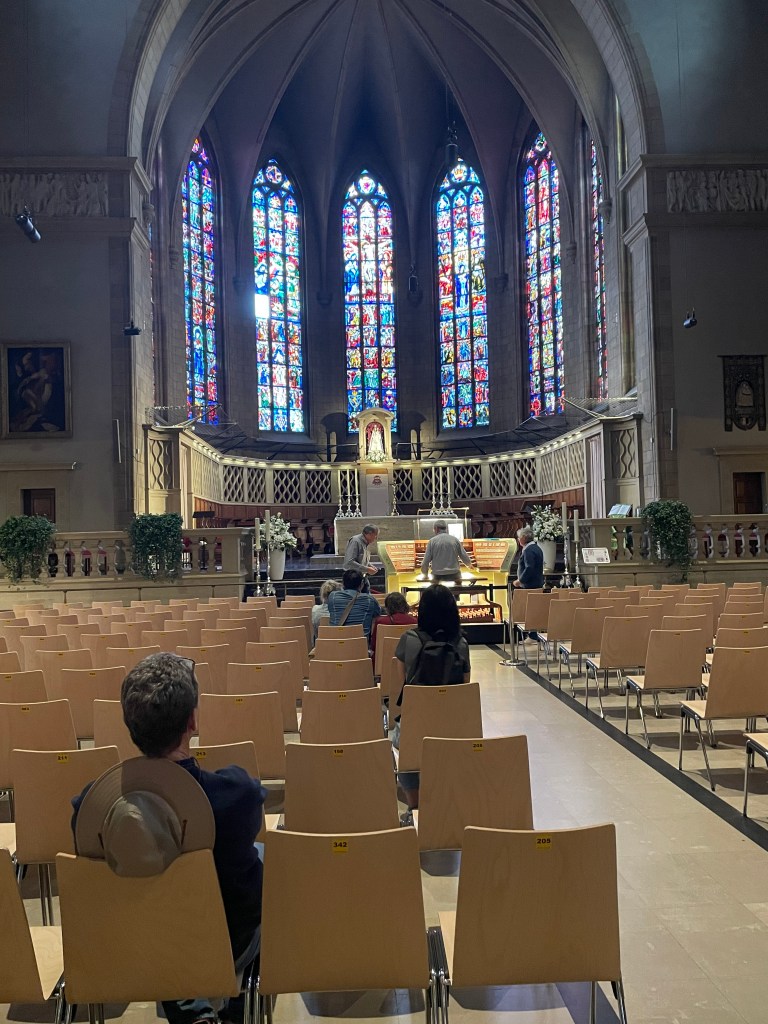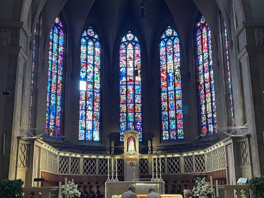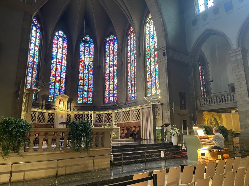 A fellow was practicing the organ (I think for a concert tomorrow night), so we enjoyed the organ tones as we walked through the gigantic building. The stained glass was beautiful and everywhere. We left as it closed at 6pm.