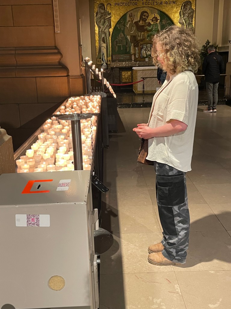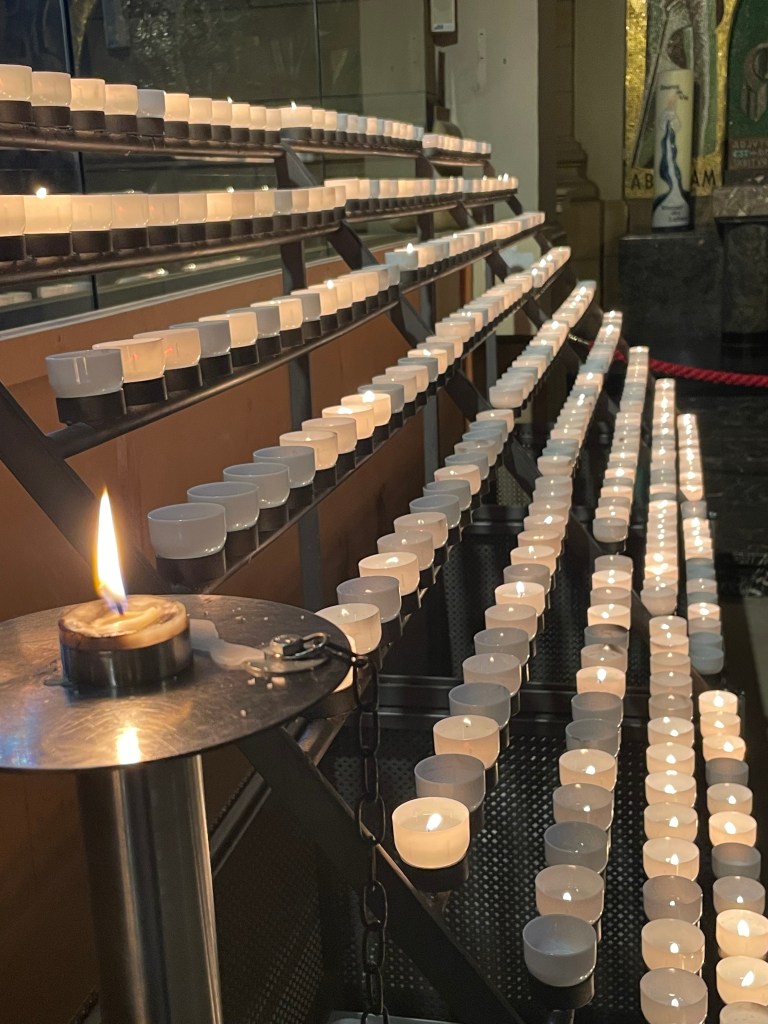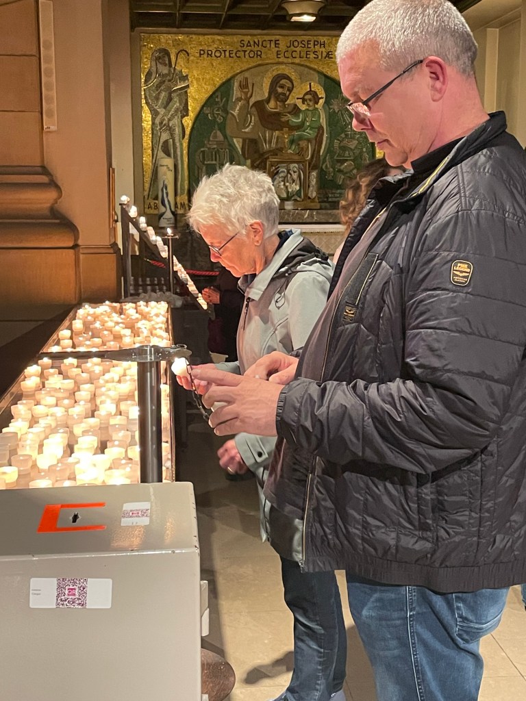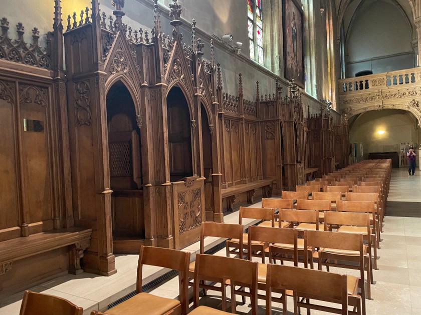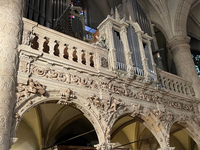 A fellow was practicing the organ (I think for a concert tomorrow night), so we enjoyed the organ tones as we walked through the gigantic building. The stained glass was beautiful and everywhere. We left as it closed at 6pm.