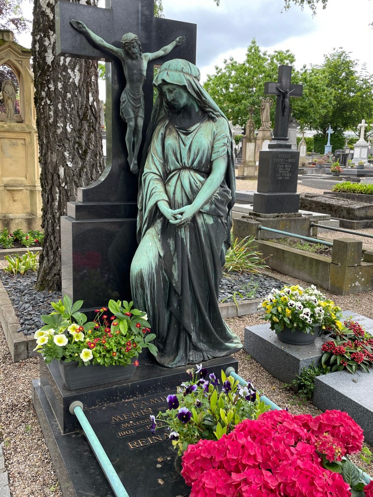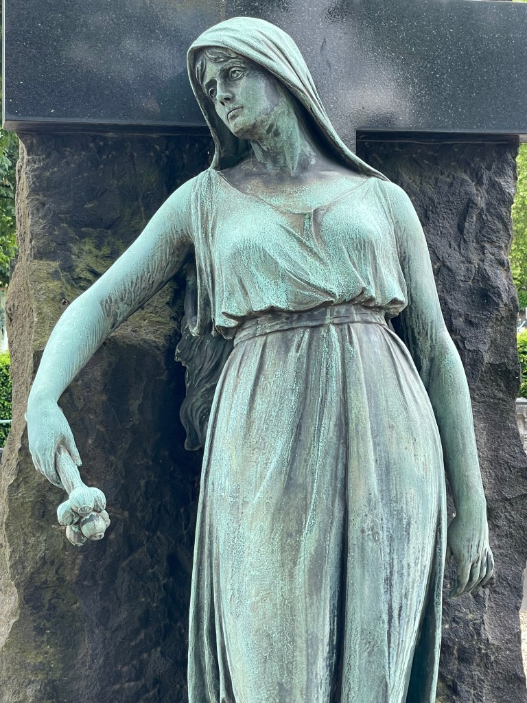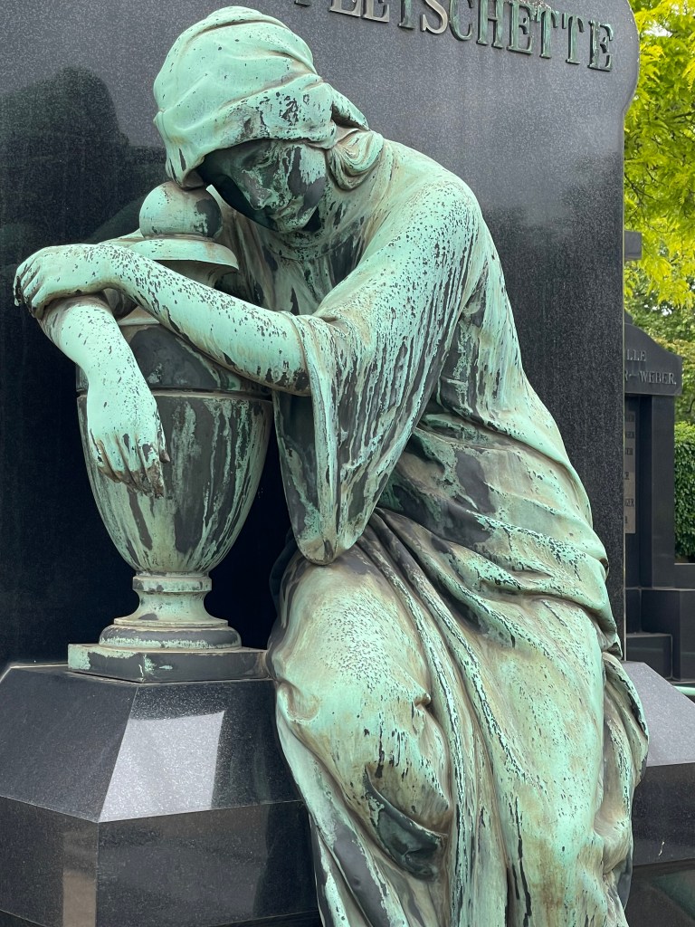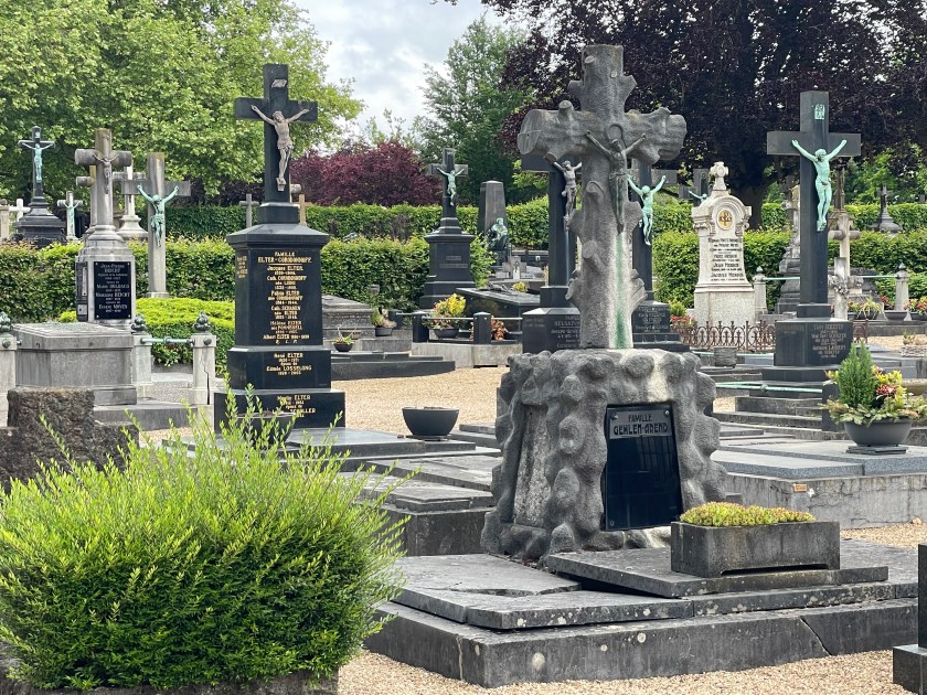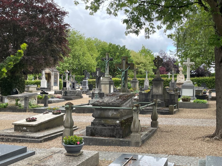 As we rode the free tram to the end of the line and back to see what we could see along the way, I noticed a big beautiful Friedhof (cemetery) and begged that we stop there on our way back. We did. For an hour or more, we wandered through this quiet and sacred resting place.
