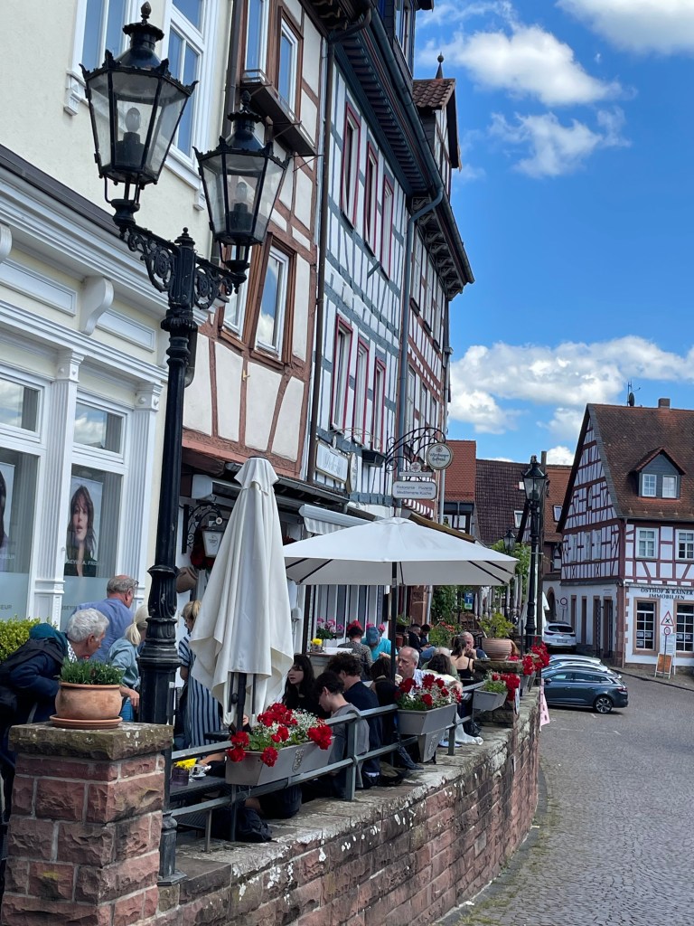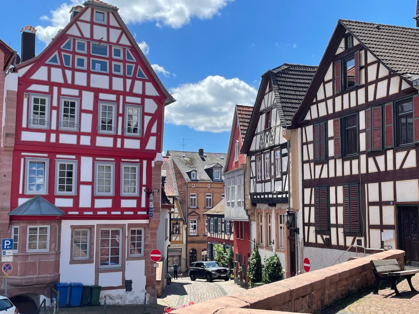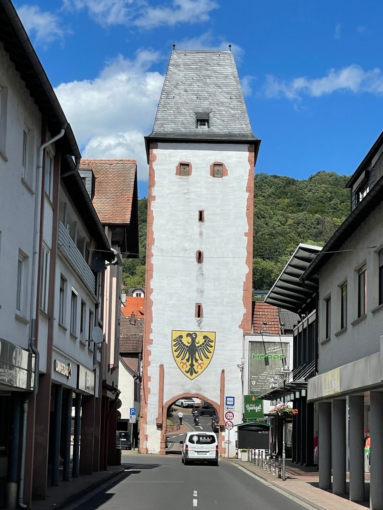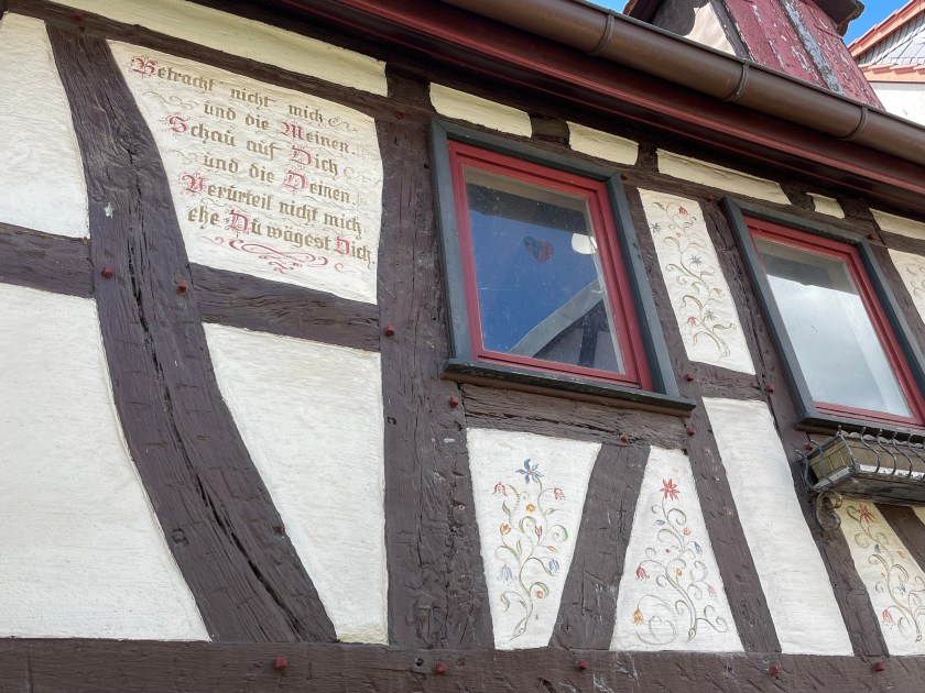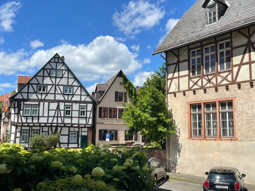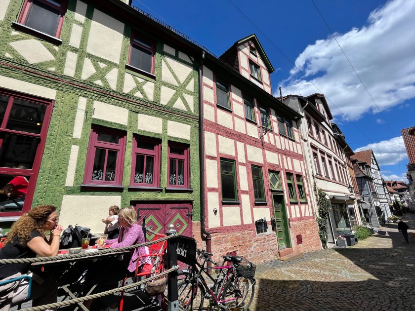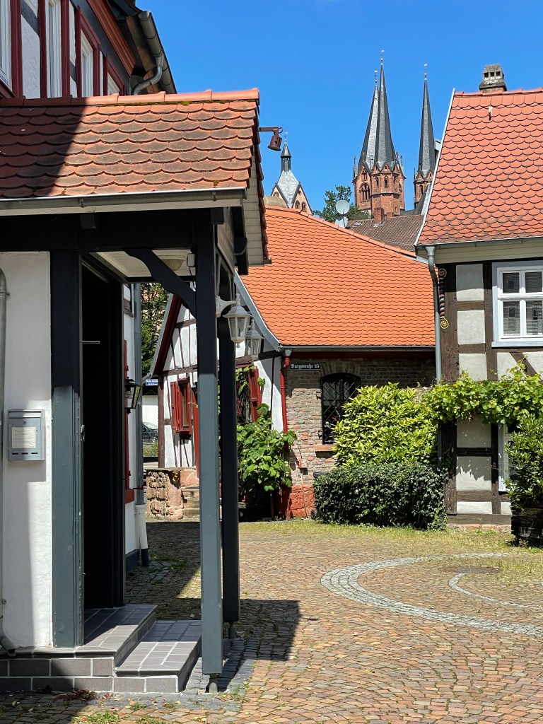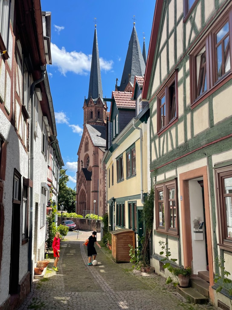 We spent a few hours wandering in Gelnhausen today. You can see how the river flows around the castle area we just visited. The ruins today are in yellow.