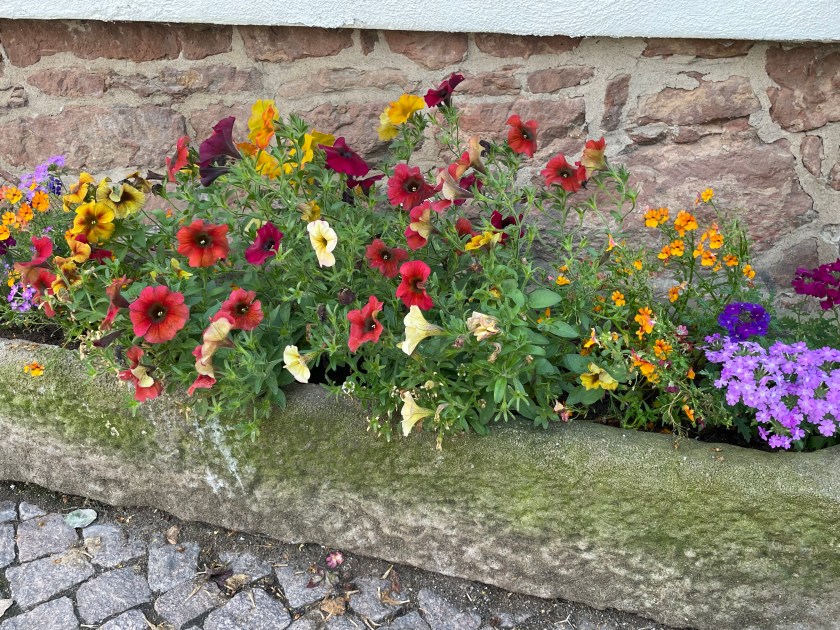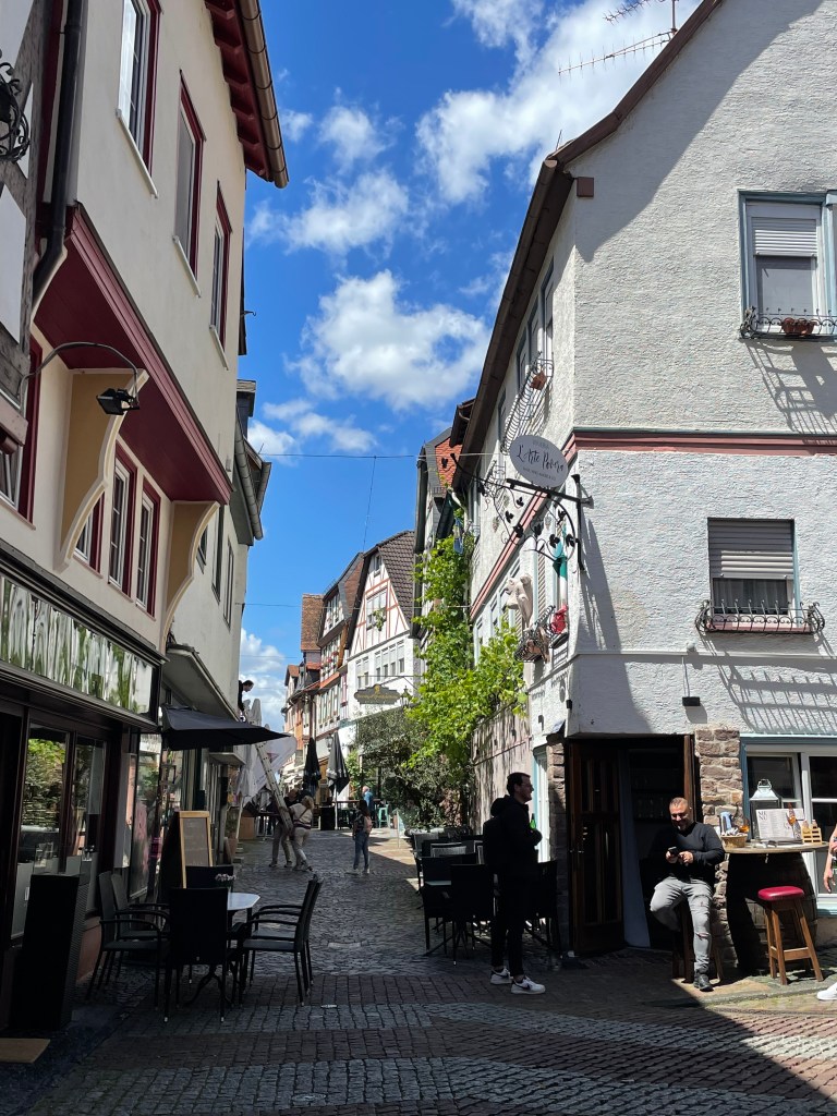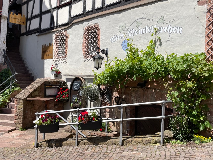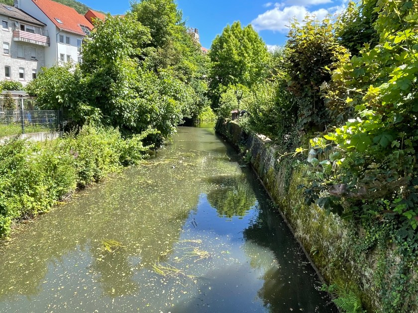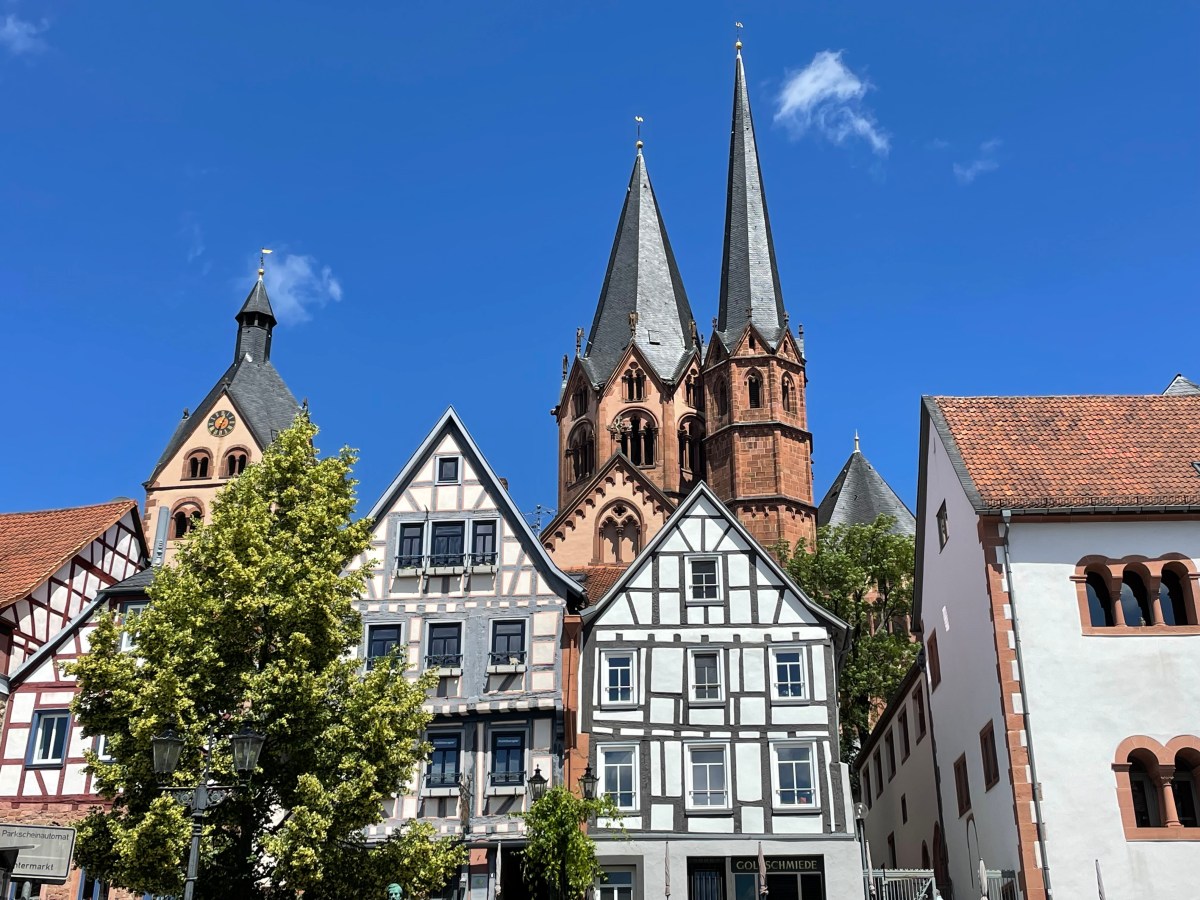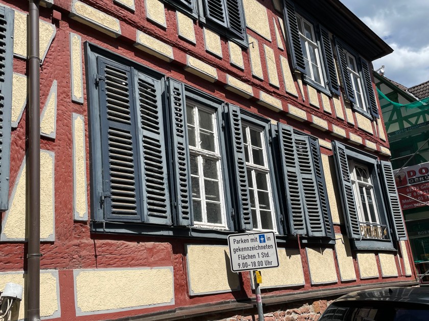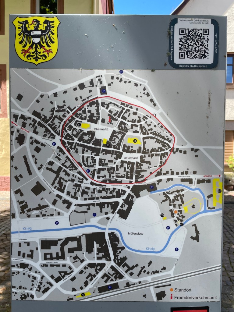 We spent a few hours wandering in Gelnhausen today. You can see how the river flows around the castle area we just visited. The ruins today are in yellow.