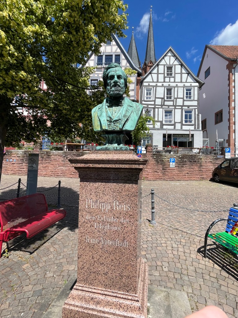 In the plaza is this memorial to Philipp Reis, the man who invented the telephone on this side of the ocean (at the same time Alexander Graham Bell was inventing in America).