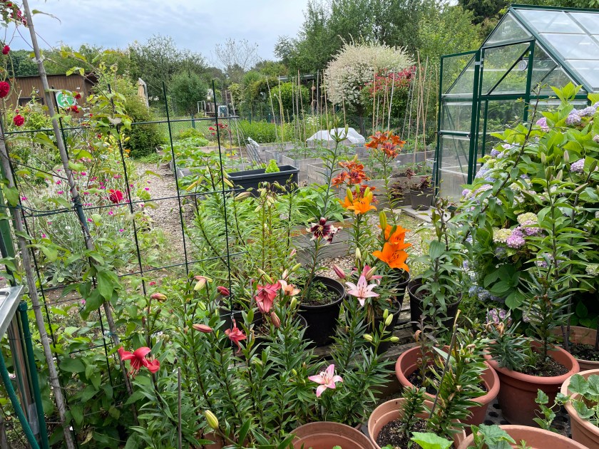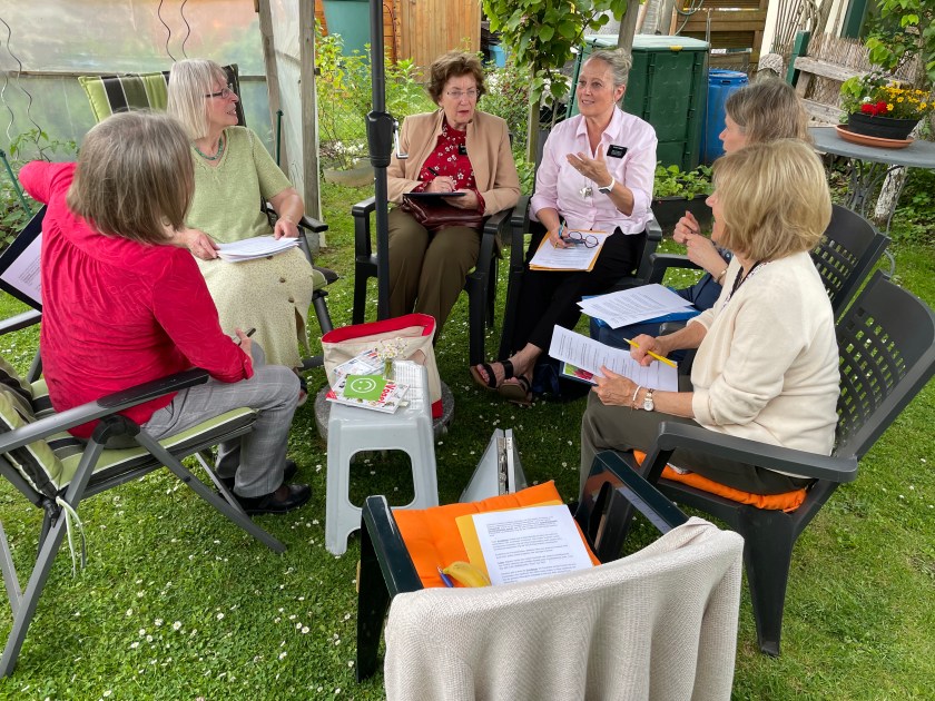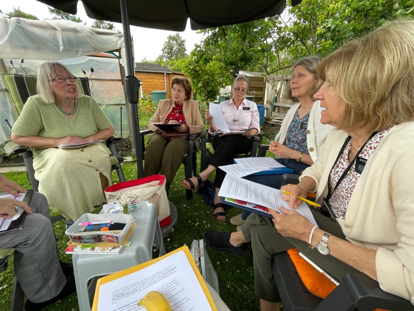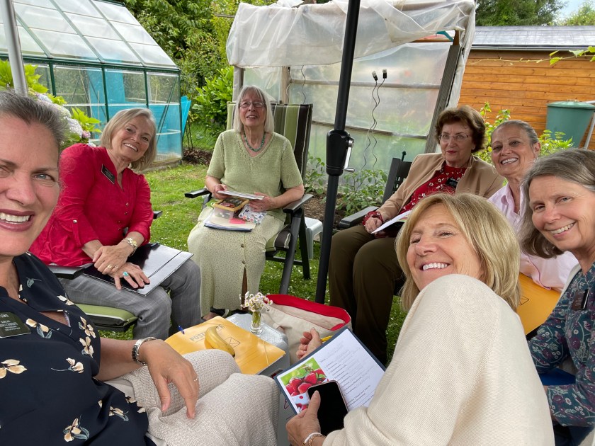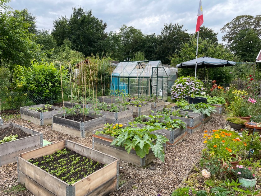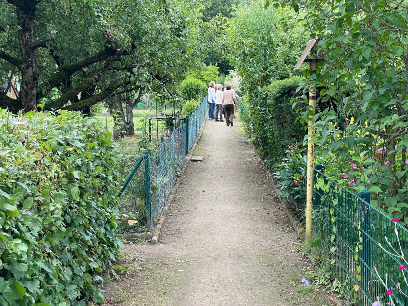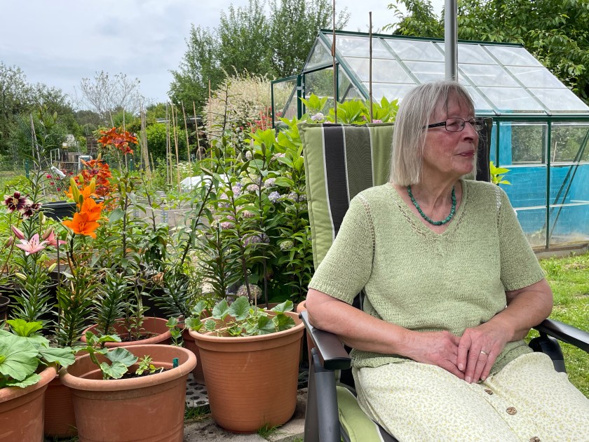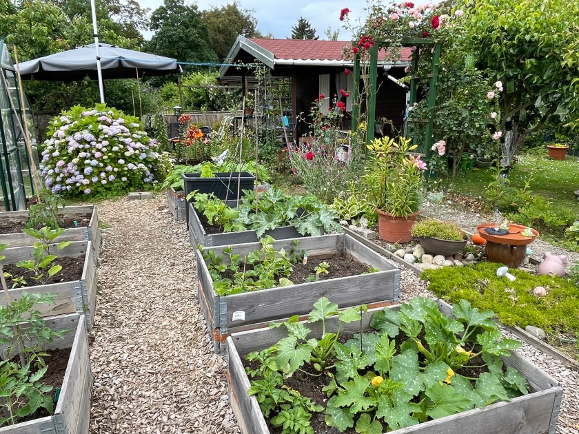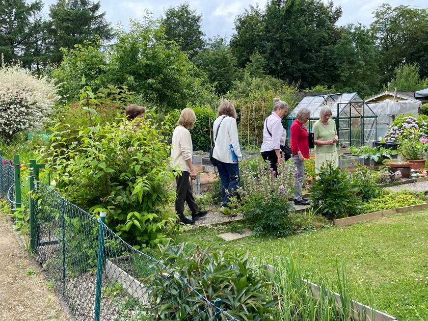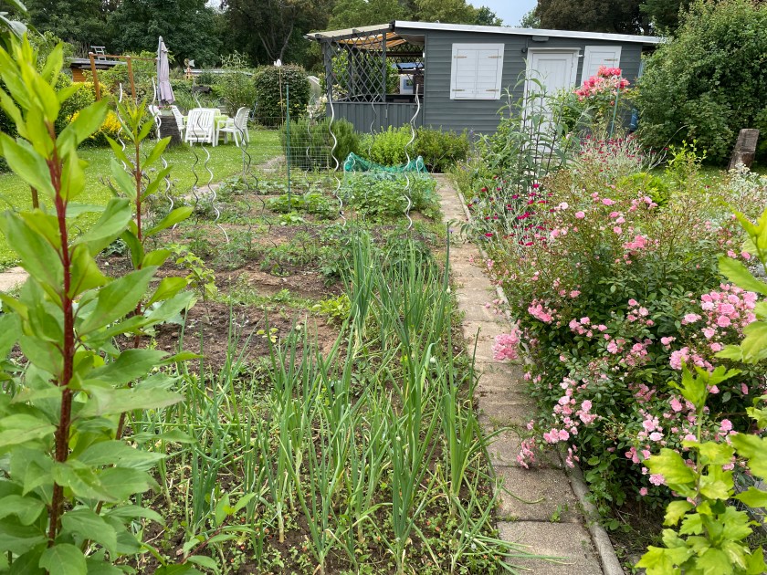 Our weekly German class with Sis Enger has moved back to the garden for the summer months. This is a little bit like a trip to heaven every week. These community garden plots are rented by families who live in the area but have no yards of their own. We are surrounded here by blocks and blocks of apartments. This is such a wonderful gift for those who want to be closer to nature.