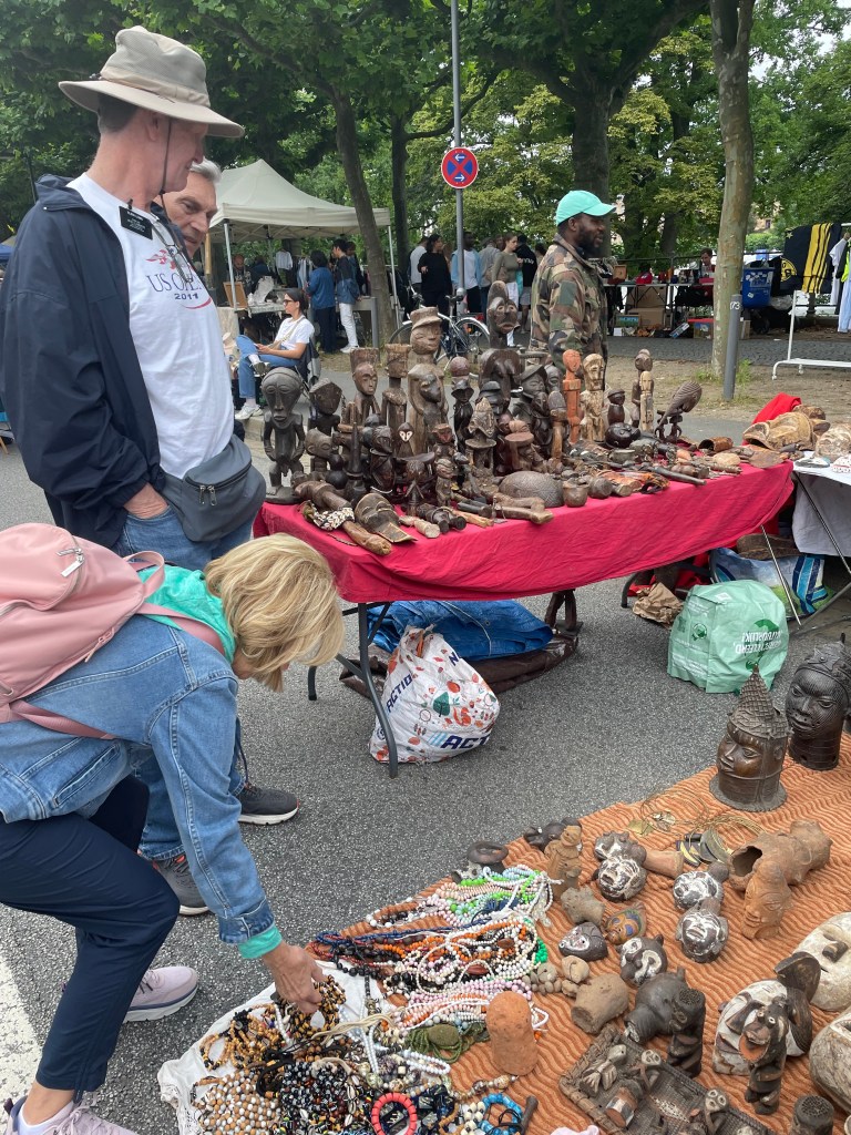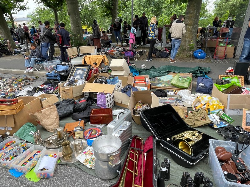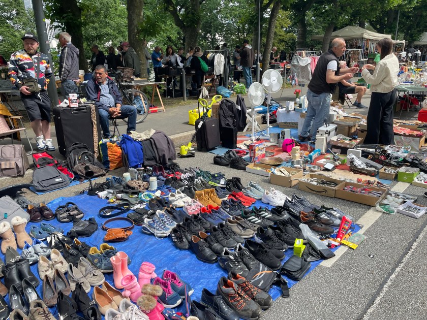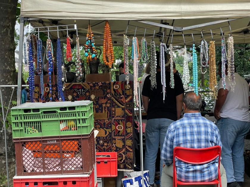 This vendor had Schleich animal figures. I’ve collected these at home, first for my kids, then for my grandkids. They’re made here in Germany, and they last forever. These were used and once-loved. They were selling for 2 Euro and up. It was fun to pick out a few unusual animals the grandkids will love.