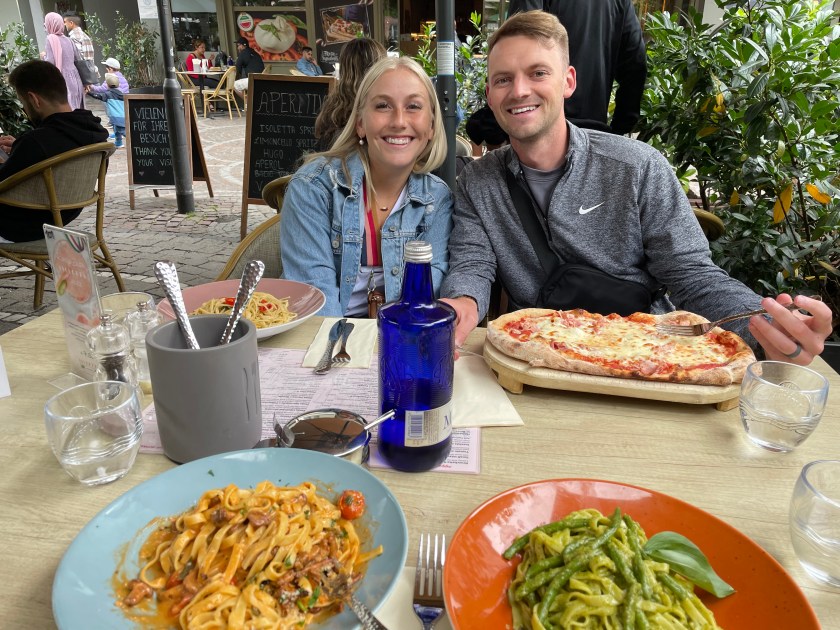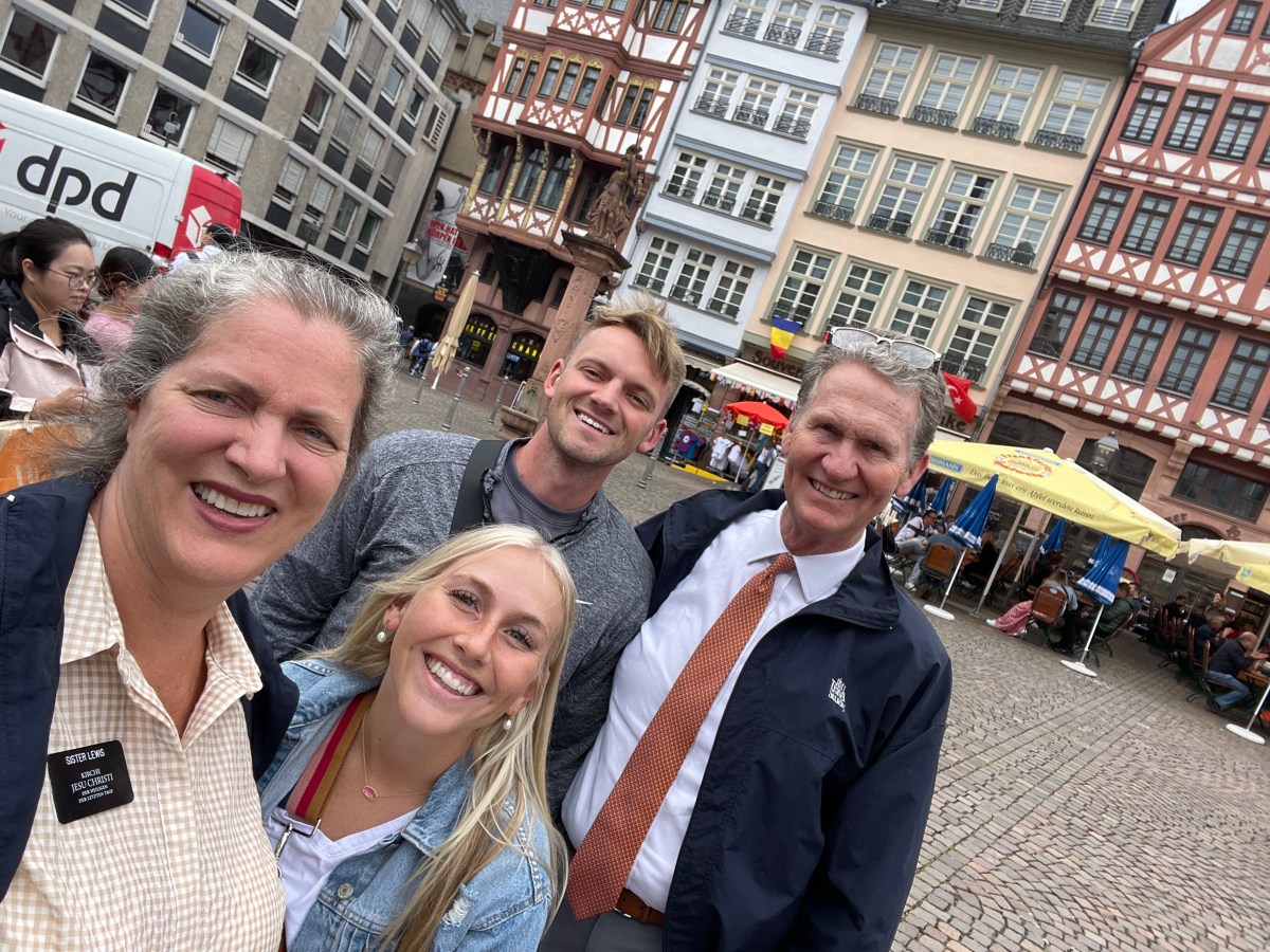 Carter Smith, one of our Yakima missionaries, and his wife Makylee, came to Frankfurt last night to see the soccer match. They’re here in Germany visiting friends. They blew in late last night and today after our meetings we took them to downtown Frankfurt to show them around for a couple of hours. It was fun.