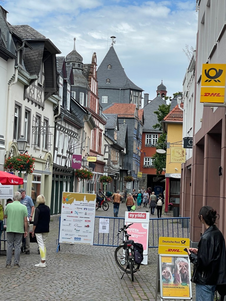 Our last stop today was in Idstein. We quickly learned that the entire old town was blocked off with sentinentels at every street, requiring 20 Euro entrance fee to a live jazz festival going on here this weekend.