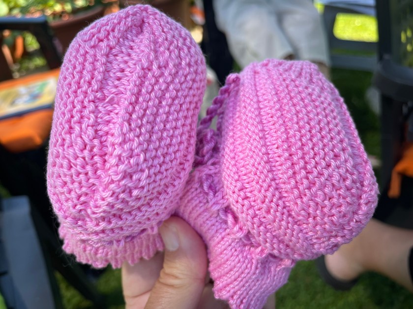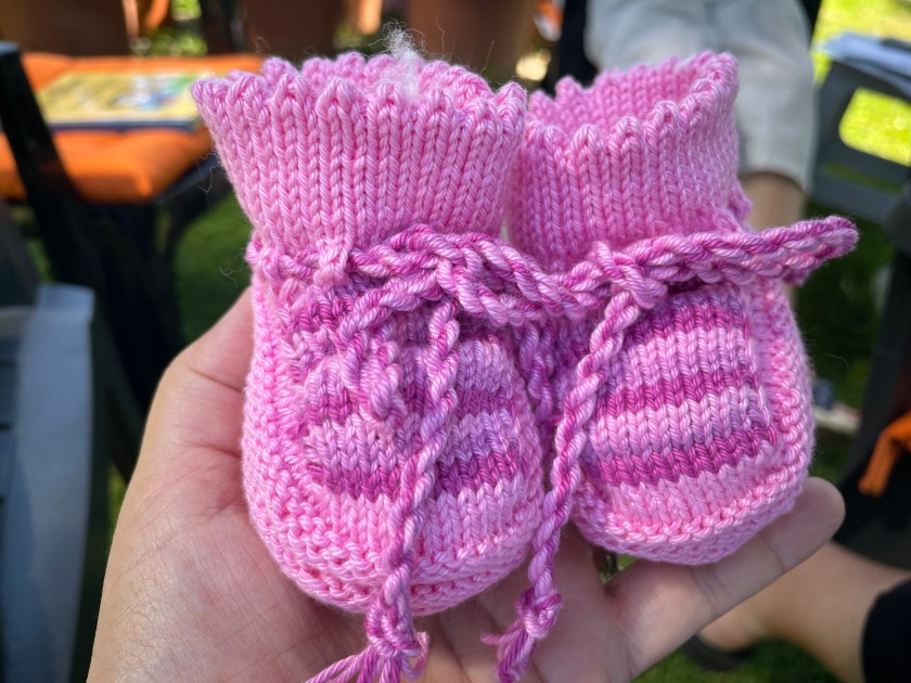 After class, Erika showed us more of the baby booties she knits. She has donated 100s of these to humanitarian efforts. Each pair of booties takes her many hours to make, using her great-grandmother’s pattern.