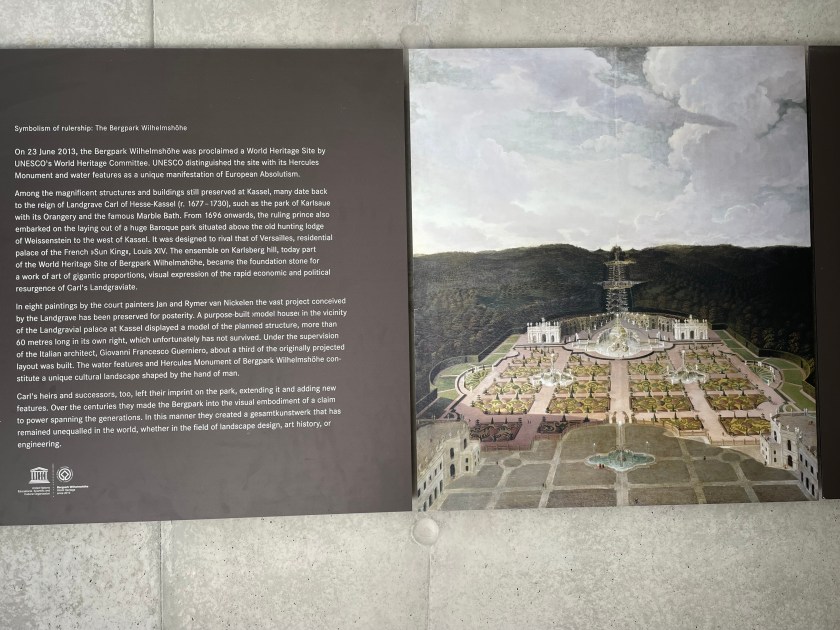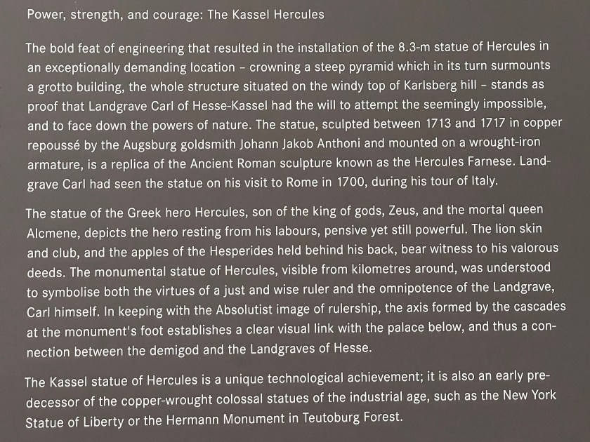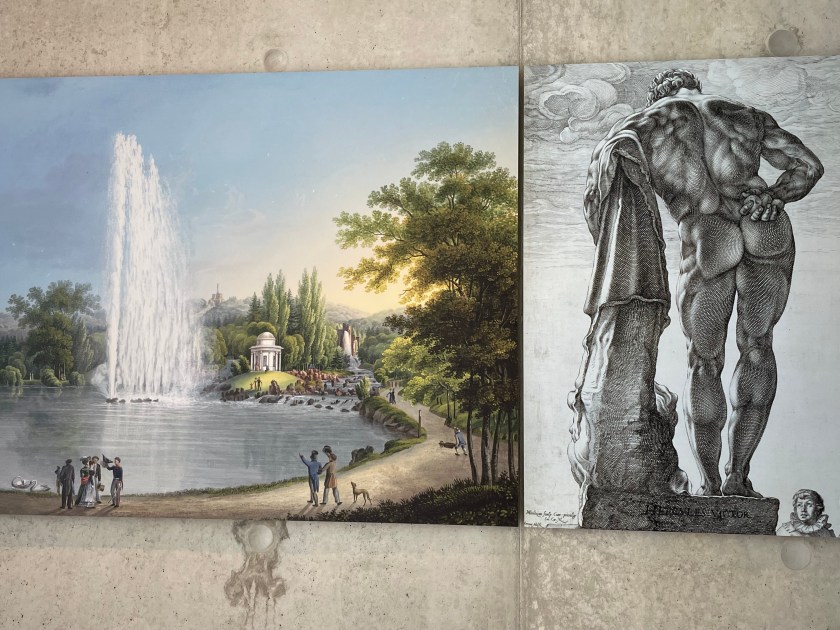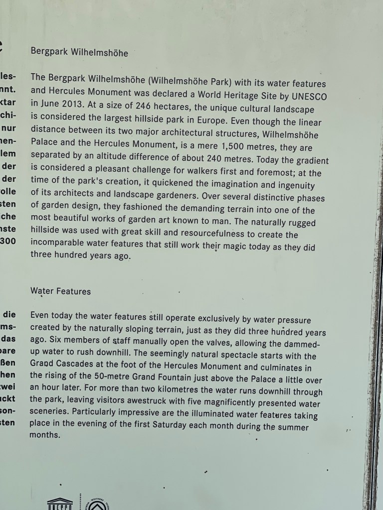 In the morning we got up and drove to the huge park that’s on the side of a mountain with a Huge Hercules monument up on the top. It’s built on a huge platform with a tower. Hercules stands about 8,3 meters tall up on the top. He’s 300 years old, put there by King Karl. We explored the monument (climbed up it) and looked down over the park that has lots of amazing water features that are only turned on 2 days a week (not today).