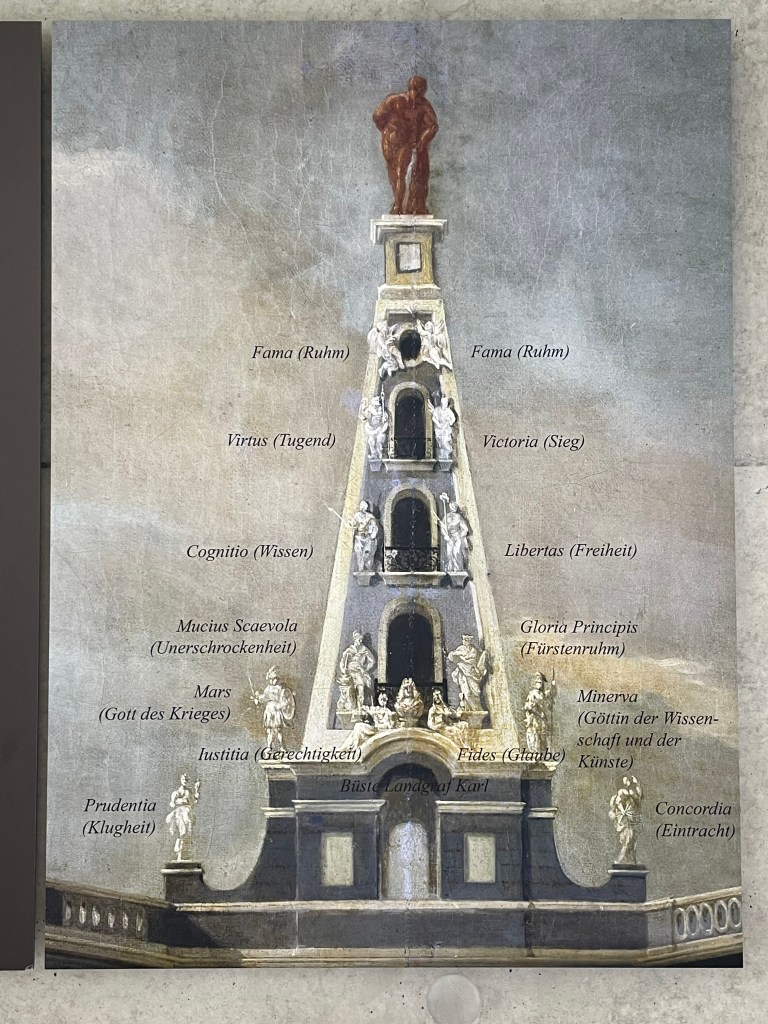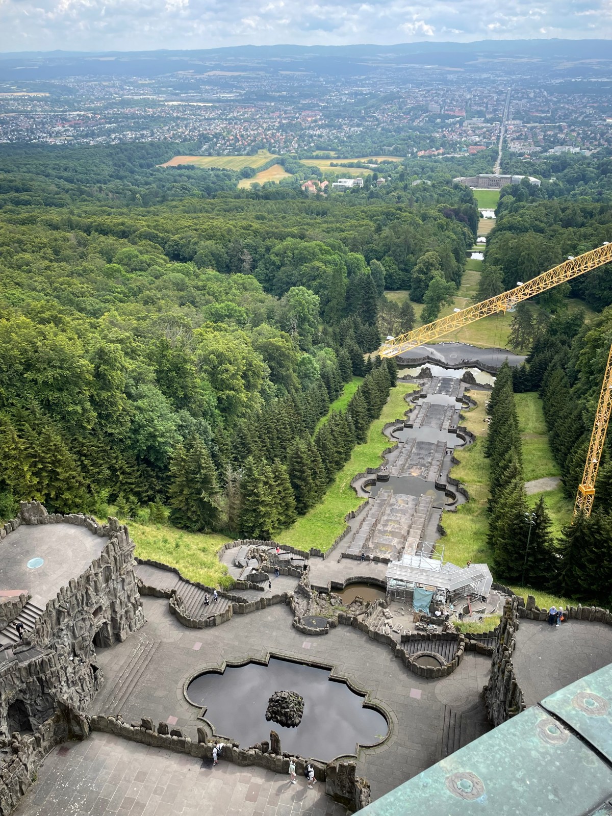 The entire Hercules monument is 70 meters high and consists of three parts. The water features start in the lower, rocky grotto structure. The grotto leads into an open-plan “giant castle” with a large viewing platform. Here you can enjoy a unique view of the mountain park and the surrounding area. Above it is a pyramid with the statue.