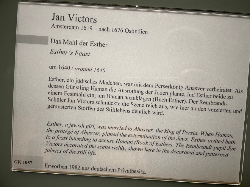 I loved that so many of the works were religious. It’s interesting to see the clothing of the time period of the artist in Biblical scenes. We saw some Ruebens, Doerer, Rembrandt, Van Dyk and more. The museum also had things from the Roman Period we breezed through.