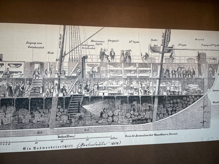 This display shows what life was like on a passenger ship in 1854, the very year Peter Bastert immigrated to America.