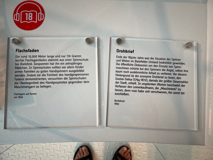 This morning we spent a few hours in the Historical Museum in Bielefeld. The museum is located in part of what was once a textile factory. Now it houses the museum and a Hochschule (a junior trade college).