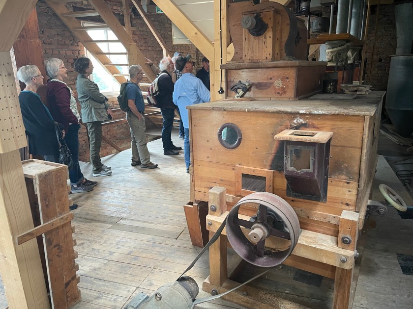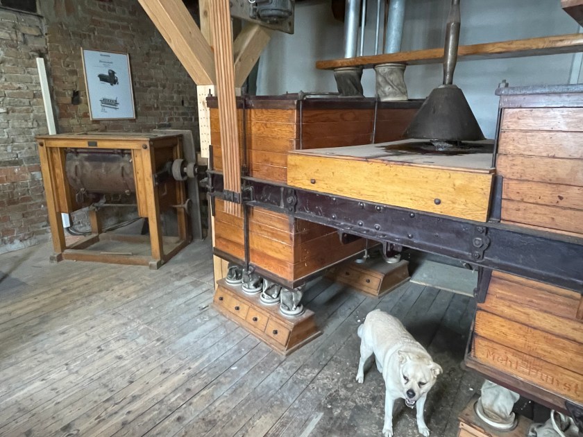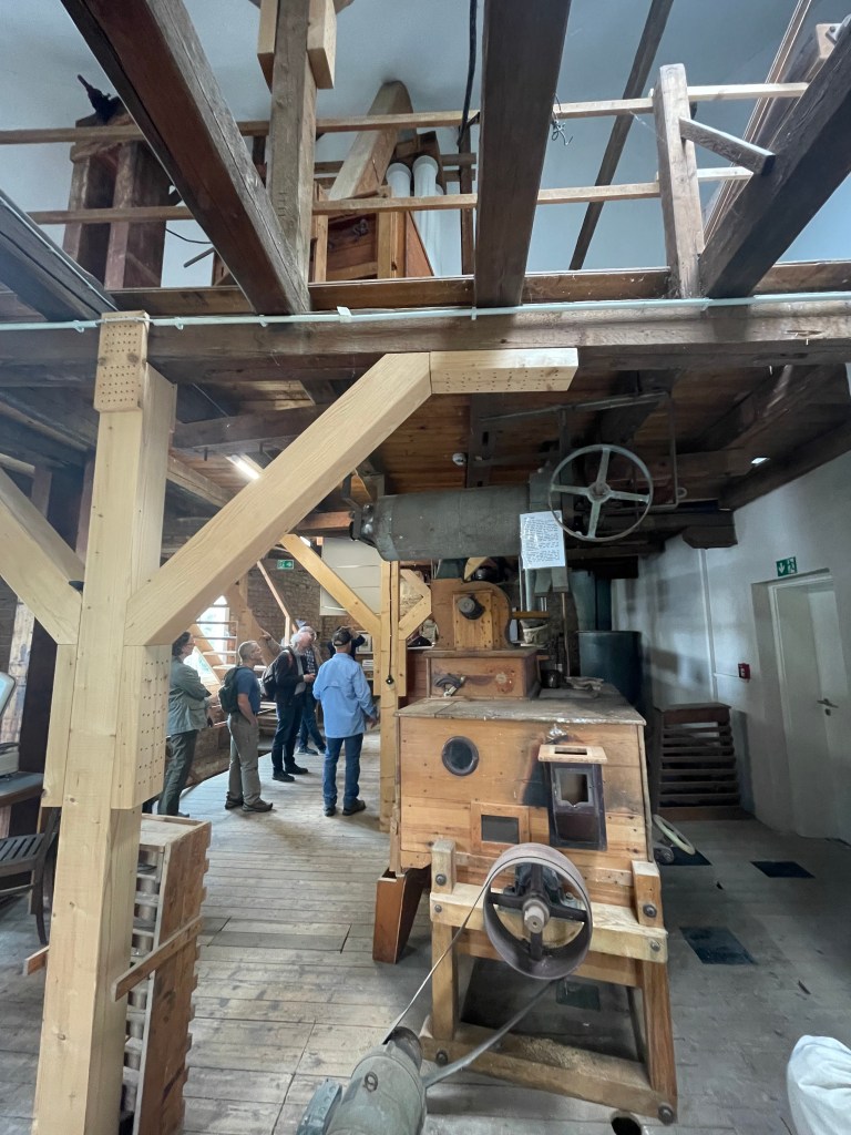 Our first place to visit in Paderborn was the Stümpelsche Mühle (mill). The man who did all the work to restore the mill is a friend of Volker’s, so he gave us a very detailed tour of the mill house (all 4 stories). We were there 1+ hours and saw every detail of every generation of the old mill and its processes. This man was a great guy, interested in harnessing the energy, which now runs the mill house, which he has turned into an apartment building for refugees. It’s heated and cooled by the water and electricity from the mill has serviced the entire neighborhood since 2015.
