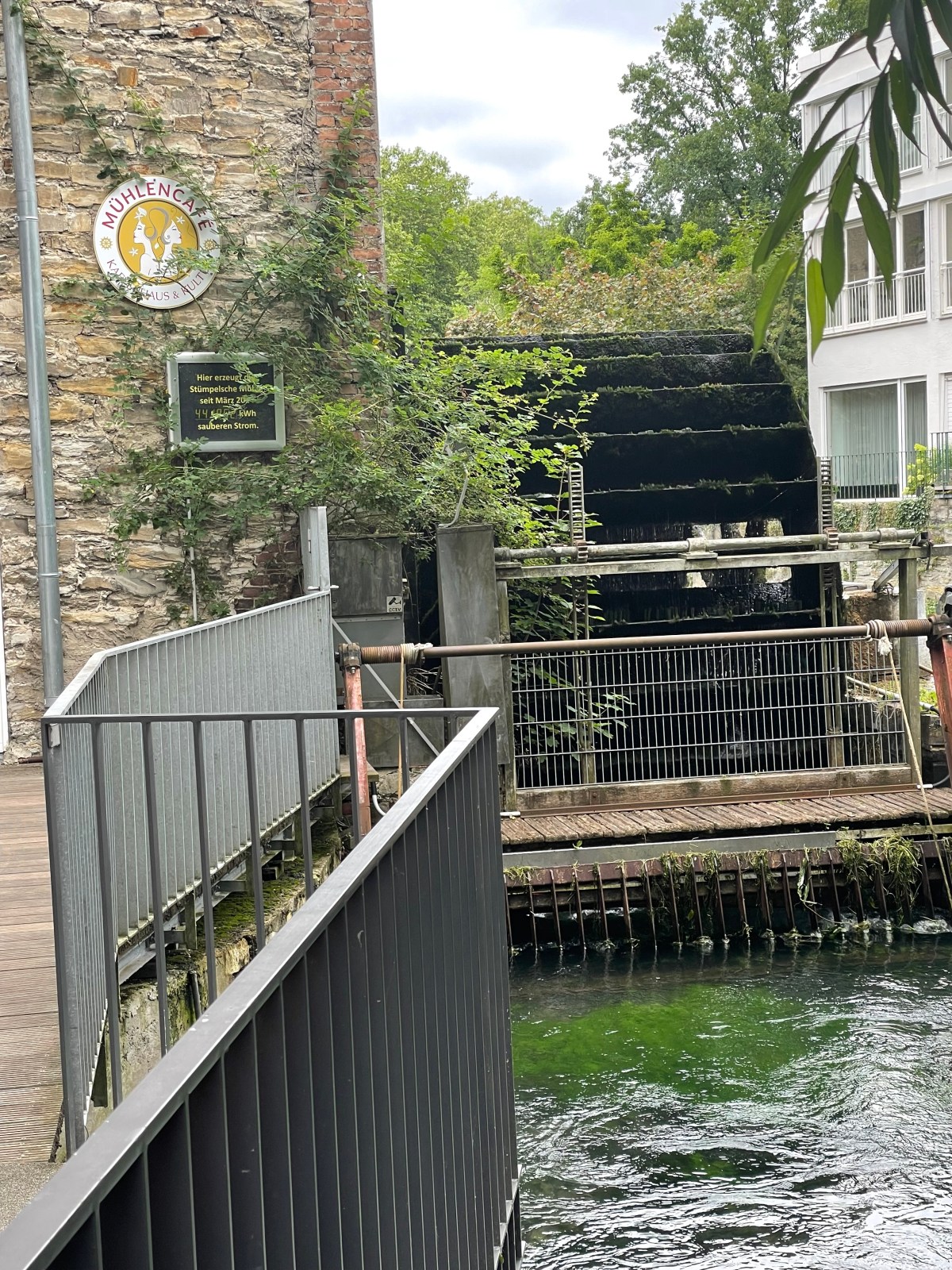 Our first place to visit in Paderborn was the Stümpelsche Mühle (mill). The man who did all the work to restore the mill is a friend of Volker’s, so he gave us a very detailed tour of the mill house (all 4 stories). We were there 1+ hours and saw every detail of every generation of the old mill and its processes. This man was a great guy, interested in harnessing the energy, which now runs the mill house, which he has turned into an apartment building for refugees. It’s heated and cooled by the water and electricity from the mill has serviced the entire neighborhood since 2015.