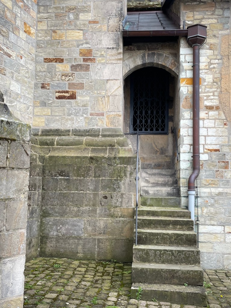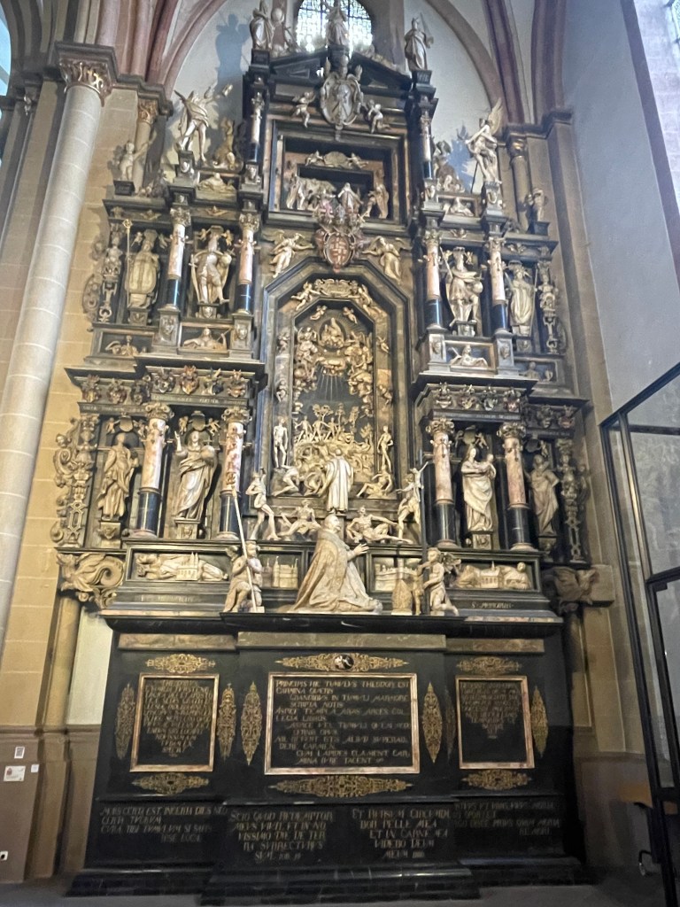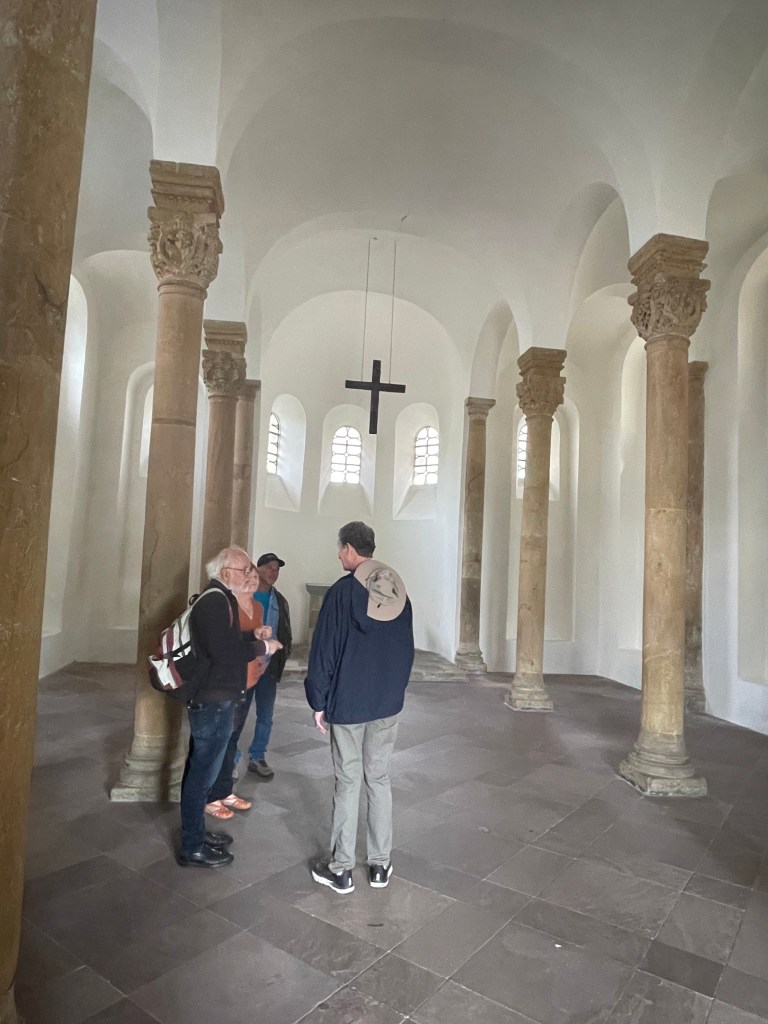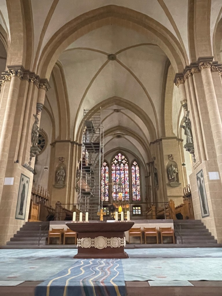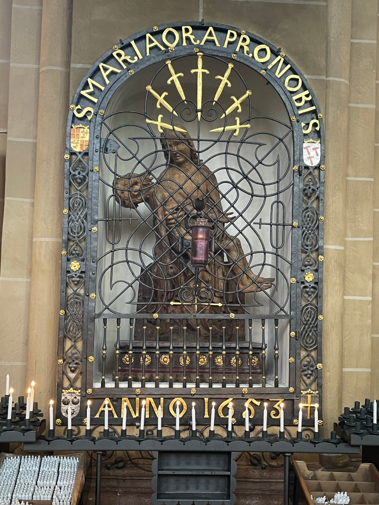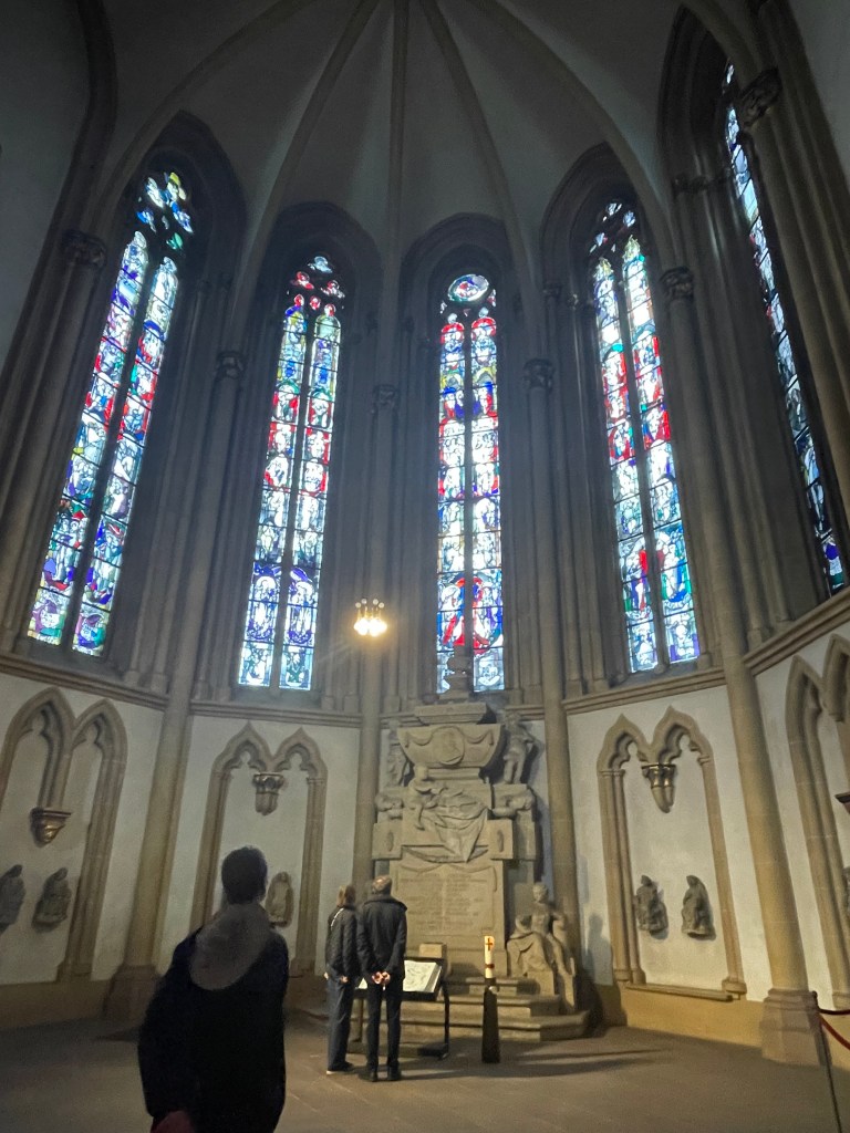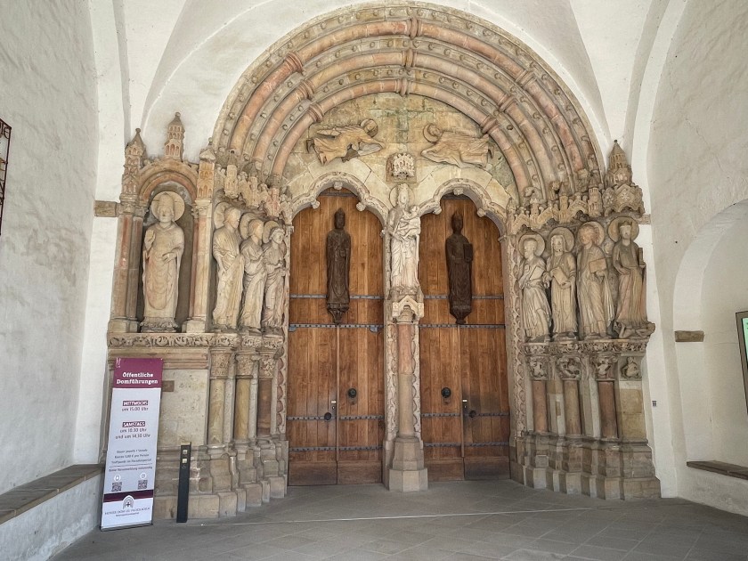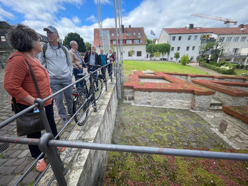 Volker took us to the Dom Cathedral in the center of town. It’s huge and it’s from the 1200s. The tower is 93 meters high, Romanesque, with a Gothic nave and windows. The crypt has a famous Saint in it, patron of the city. Outside the church are the foundation remains of a church owned or built (?) by Jerome, Napoleon’s brother.