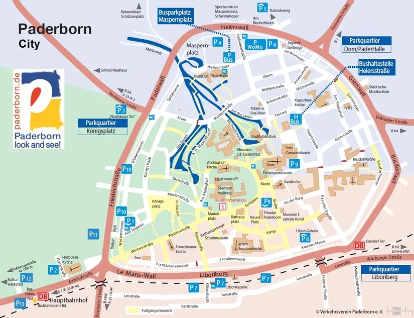 Paderborn is named after the Pader River and springs that originate here. These are Germany’s highest-yielding springs that bubble up out of the ground, creating a river that flows into the Lippe. There are more than 200 springs that release 9000 liters of water/second, or enough every second to fill 40 bathtubs! The water comes from mountains in the area, traveling underground for 4 days, before coming up in Paderborn.