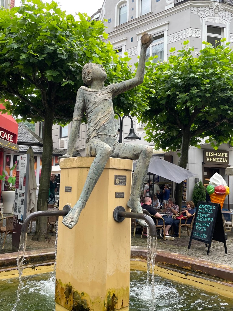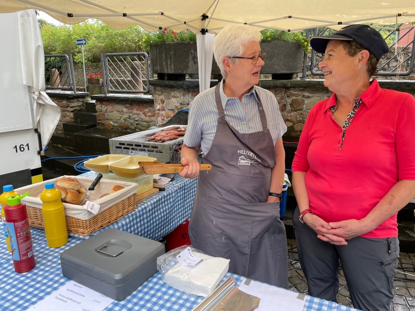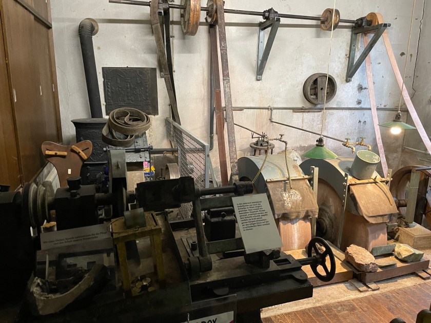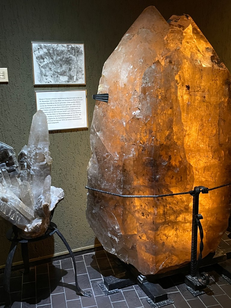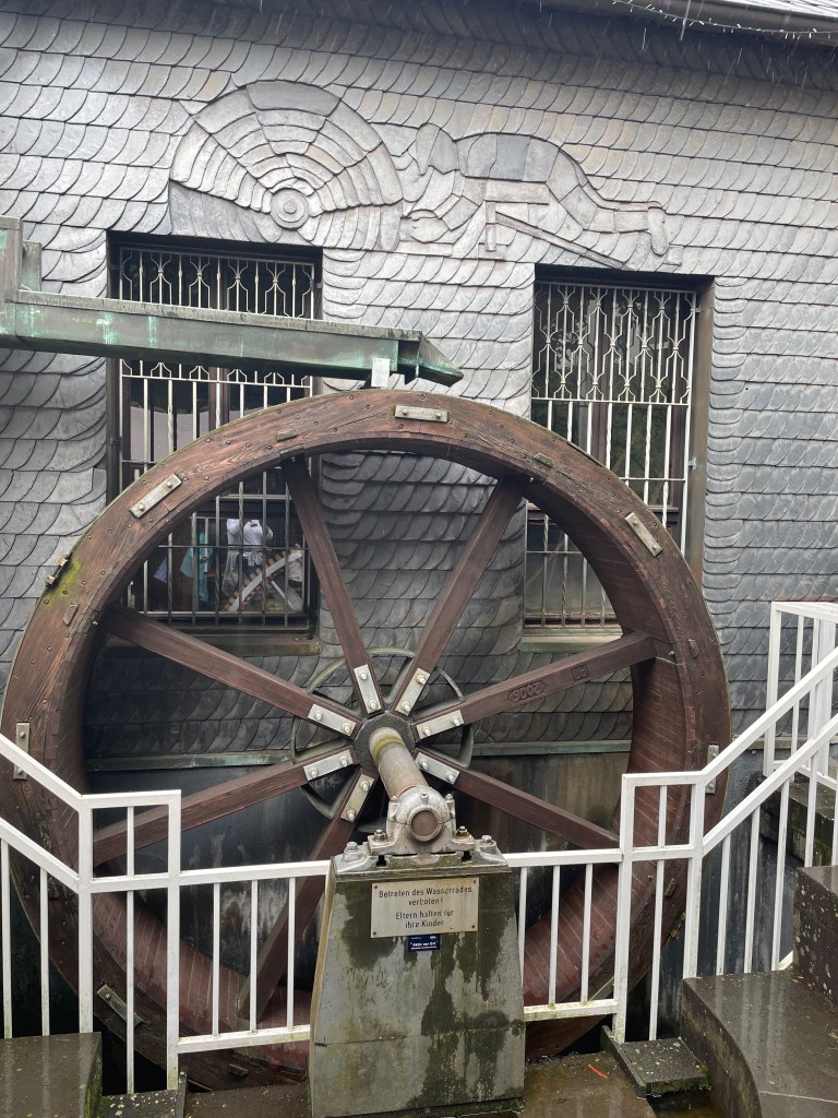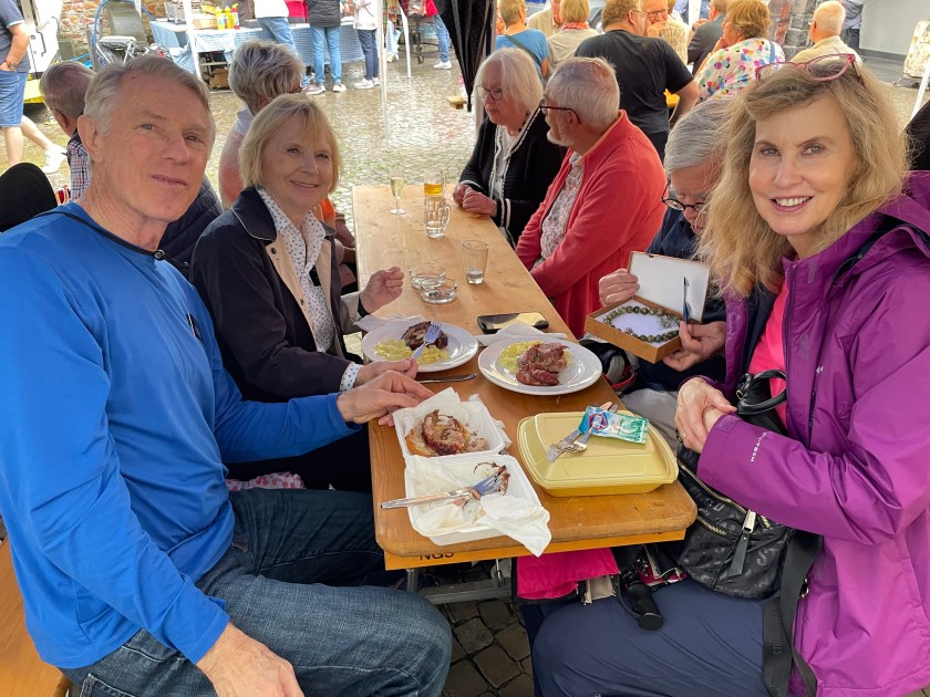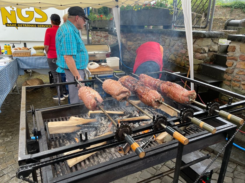 There’s an interesting relationship here between Germany and Brazil because of the miners that left here to find better work there. When we got to the heart of the town, there was a special festival going on (one weekend each year) and the food being served was Brazilian grilled pork roasts. They had several big rolled pork roasts on spits over a beechwood fire. For about 5 Euro, we each got 2 slab cuts of the pork with a roll or potato salad. It was a fun meal.