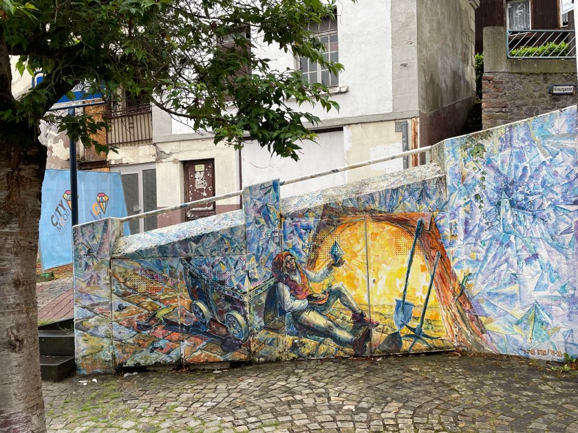 After touring the gemstone mine, we came into town. We were told by other missionaries not to shop at all the gem stores along the main shopping street until after going to the Outlet Store “on the other side of the bridge.” It took a little doing to find it, but we did. It was mostly jewelry, not a place to buy stones. I was hoping to get some stones for the grandkids and I found a bag of gemstones for 6 Euro, so I got one of those.