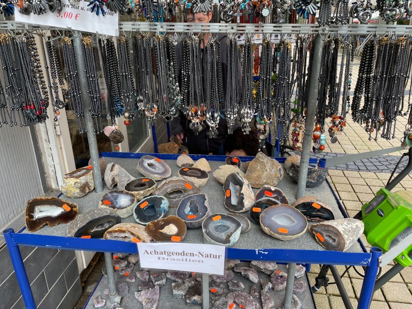 There were 2 walls like this showing all the different kinds of stones. Most of what’s sold here comes from other parts of the world, now that this is a famous gemstone place.