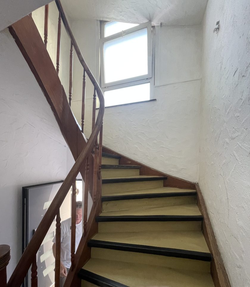 These are the stairs inside the house that lead up to the 2 apartments. I spent a couple of nights here in 1976. My Tante Hilde Haussler was living here at that time. She served me breakfast–a soft boiled egg in an egg cup, toast and a cup of hot milk.