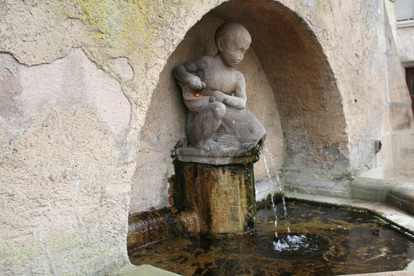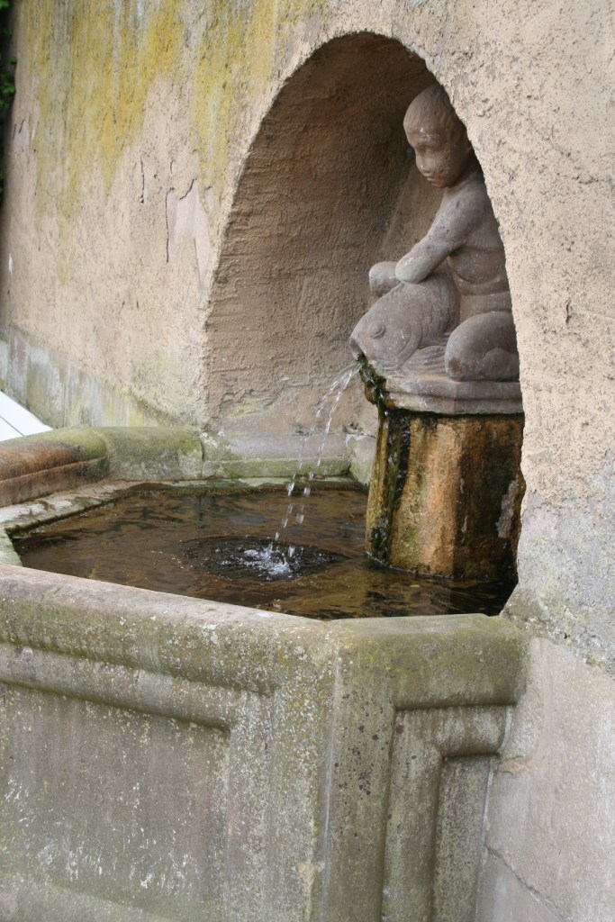 Across the street from Elsa’s home, in the wall of the church is this fountain: