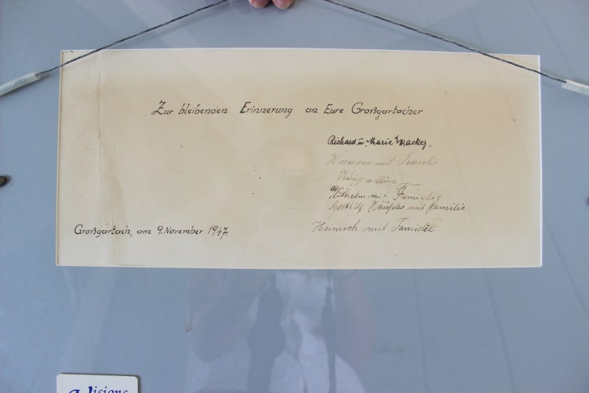 Today we drove the 2 hours south Grossgartach. My heart was beating fast the whole way. I’ve been to Grossgartach several times, the first was in 1976 when I was 17 years old and living as a foreign exchange student in Dettingen, by Konstanz. I spent a week visiting relatives, and that’s when my love for my German family began.