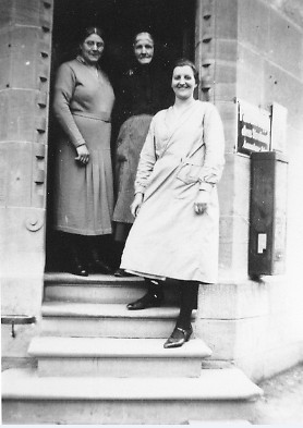 This is a photo of Elsa with her mother, Susanne, and her cousin, Hilde Kolb m. Haussler. These are the women who ran the shop. The photo on the right is of Susanne and Christof Schaefer, my Great-grandparents, in that same doorway.