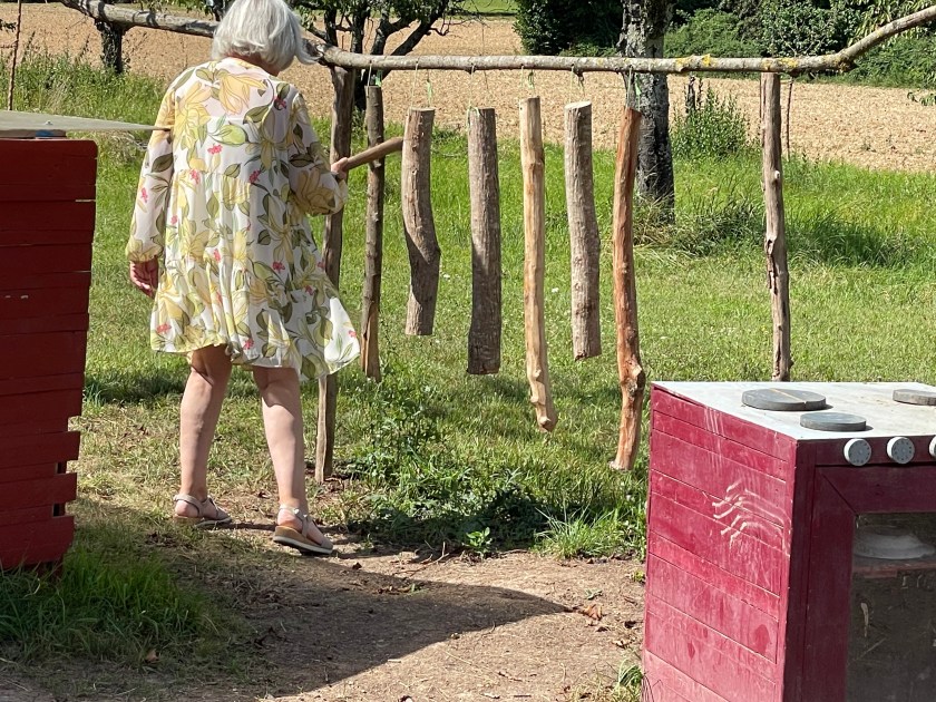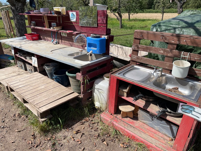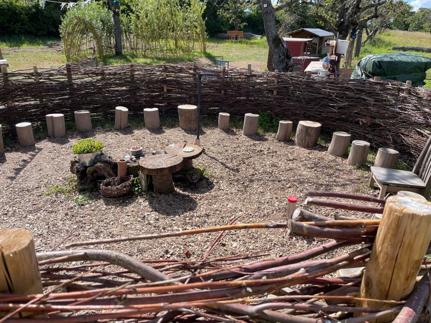 On our way from Schluchtern to Brackenheim, as we drove through the country farmlands and woods, we stopped to see the Nature Kindergarten where Michael Laemmlen’s wife, Katrin teaches. No one was here today on Saturday, and we enjoyed imagining the children learning and playing here. They hold school here year-round. This outdoor classroom is delightful!