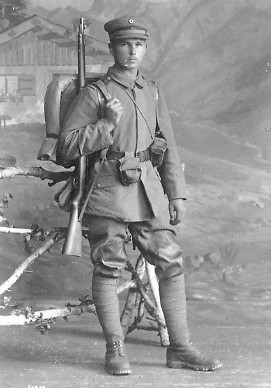 In 1914, when Rudolf was 15 years old, World War I broke out. His brother, Hermann joined the Ulanen cavalry regiment in Ludwigsburg in 1912, survived the war. Grandpa said he came home at the end of 1918 half deaf and nervous. Hermann was in the infantry from 1915 to 1918. Grandpa was drafted in July 1917 into Regiment 122 based in Heilbronn. After three months, he asked to be transferred to the mountain artillery, Sonthofen Allgau. He was only in one bloody battle–at the Marne, against the Americans. He returned home January 1919.