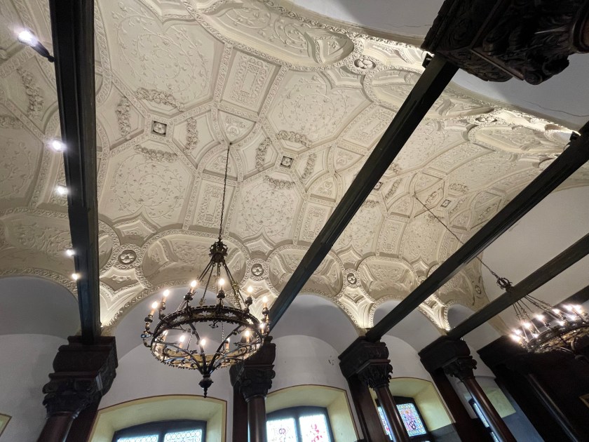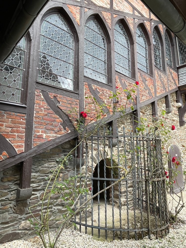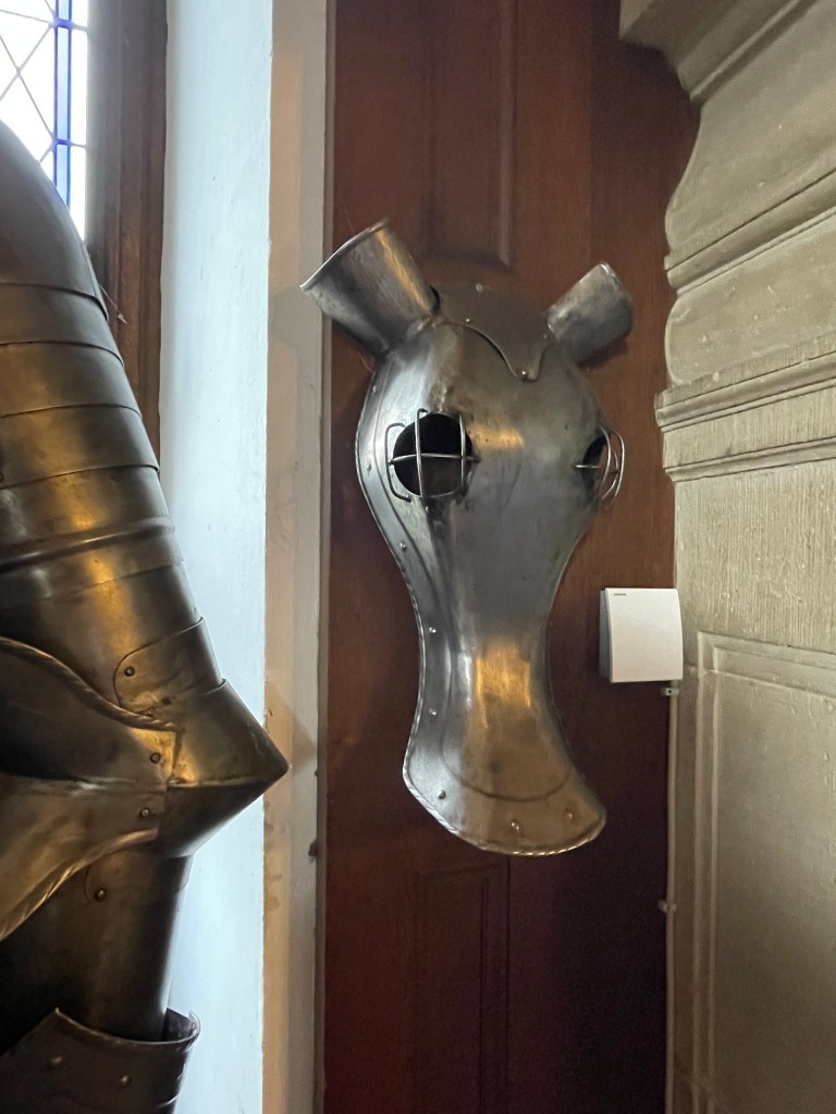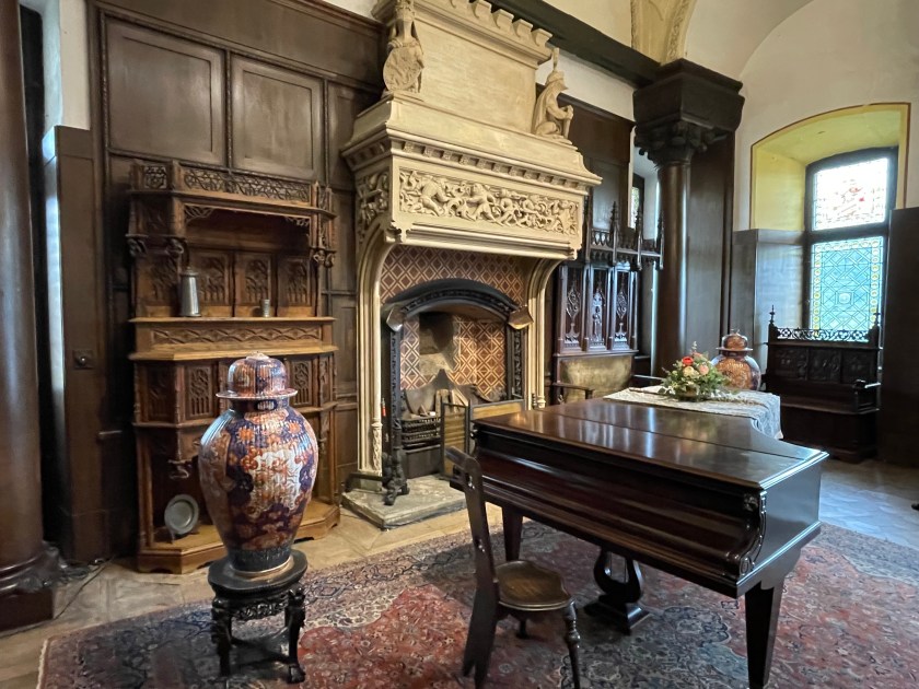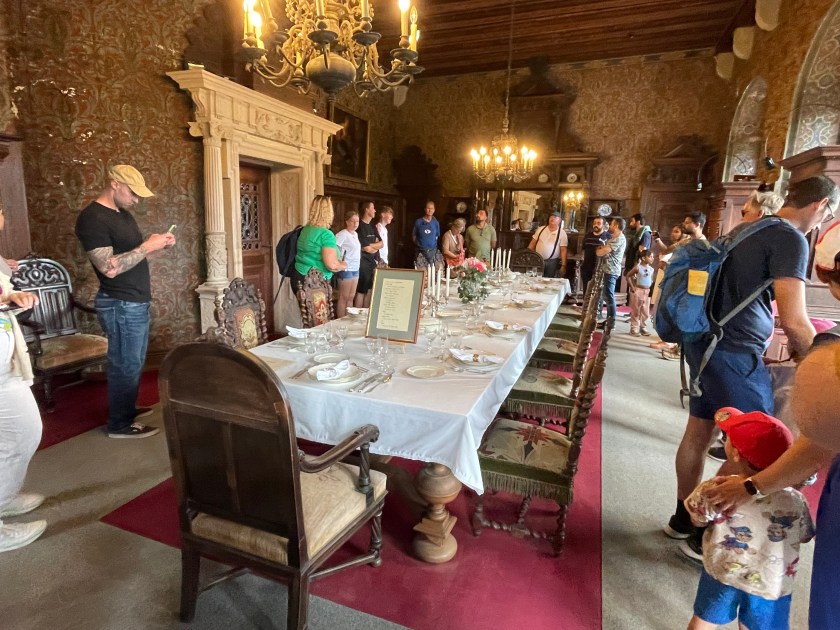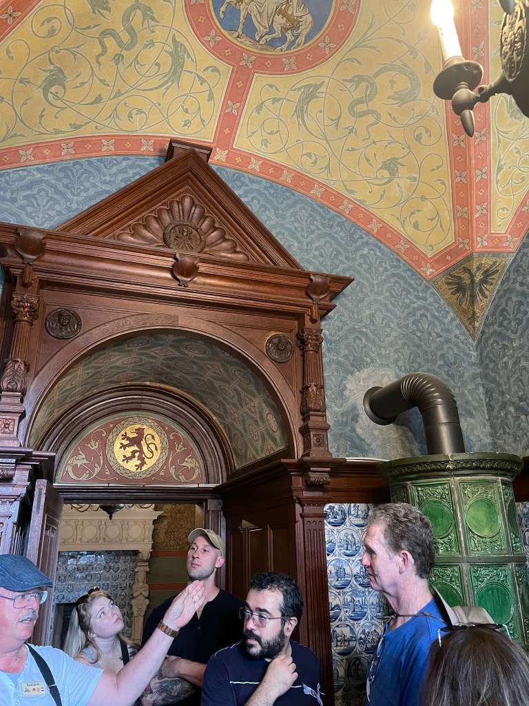 The exterior of the castle was really beautiful. Stone work, vines and flowers, attention to detail. Magical. Really amazing. Reminded us a bit of Berg Eltz. The rooms inside were small and intimate, some felt like a hunting lodge, with stuffed animals mounted on the walls, including the head of a huge boar. There were suits of armor and some hunting weapons.
