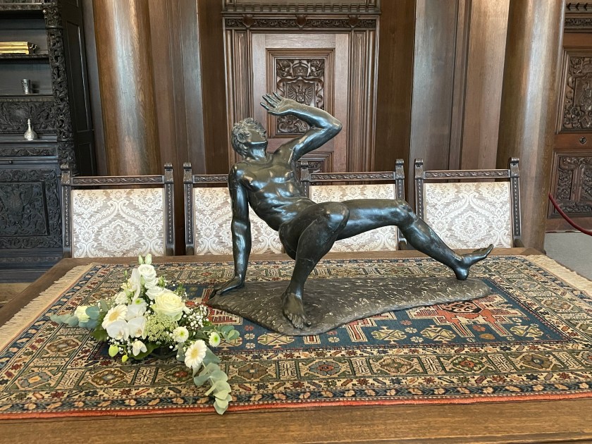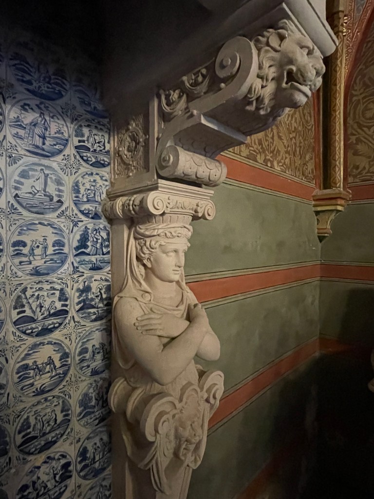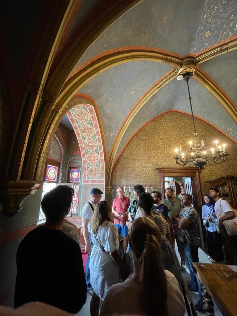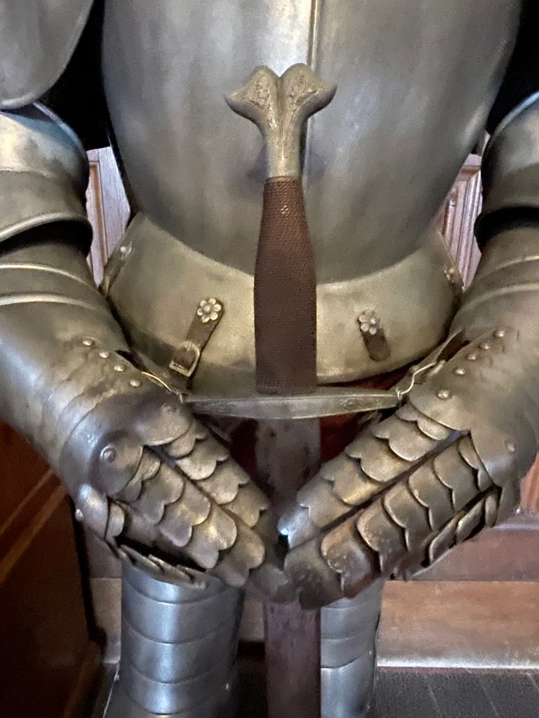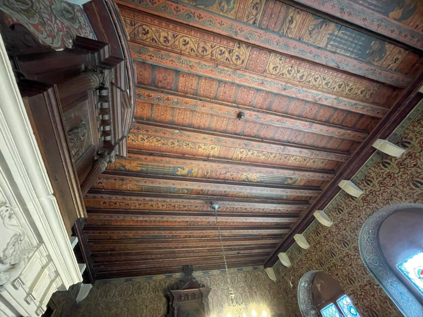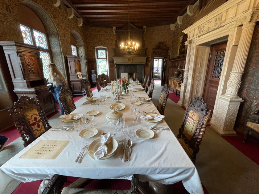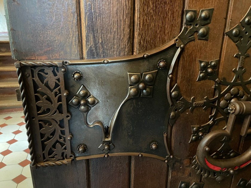 The exterior of the castle was really beautiful. Stone work, vines and flowers, attention to detail. Magical. Really amazing. Reminded us a bit of Berg Eltz. The rooms inside were small and intimate, some felt like a hunting lodge, with stuffed animals mounted on the walls, including the head of a huge boar. There were suits of armor and some hunting weapons.