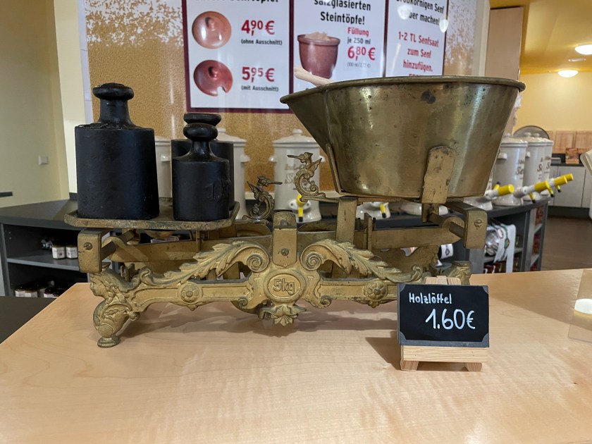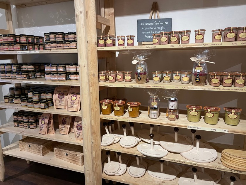 By about 4:30 we headed back to our car, stopping at a Senf Museum (mustard). We’d just missed the last tour at 4:00. That would’ve been interesting.