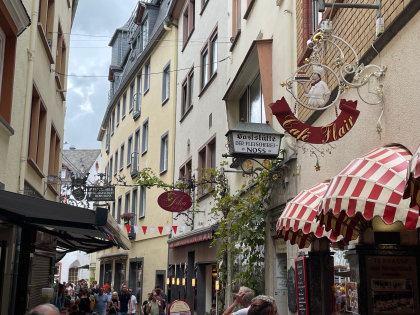 Today’s Saturday was one of my favorite yet! We drove to Cochem, an hour and 45 minutes from Frankfurt, then spent most of the day exploring there. It was an absolute must see destination. We loved it. The town is nestled along the Mosel River, in beautifully scenic country. It was historic, charming, interesting, and photogenic. I couldn’t help myself with my camera. There was so much to capture because I will want to revisit this place through these photos.