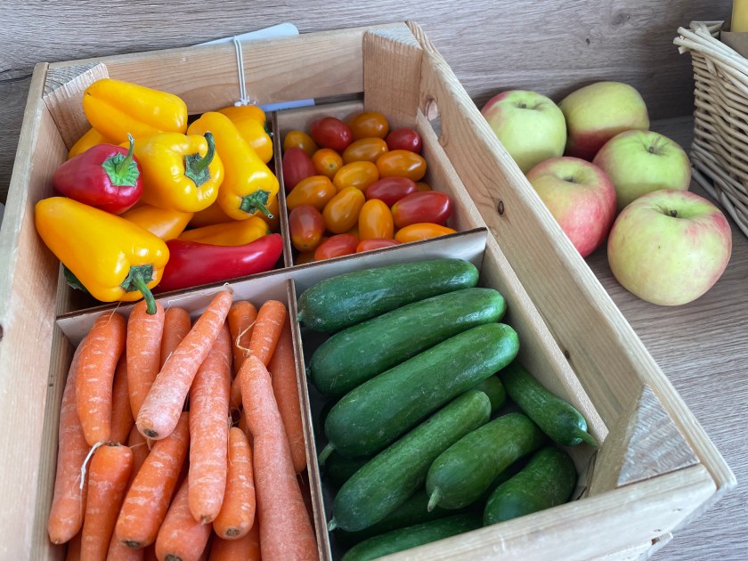 Here are 3 of my favorite things about working in Frankfurt at the Phoenix Haus. We have fresh fruit and vegetables brought into each lunch area several times a week. We can help ourselves to whatever we’d like. I especially enjoy the seasonal fruits.