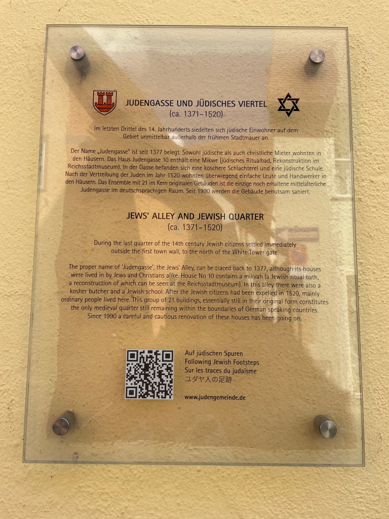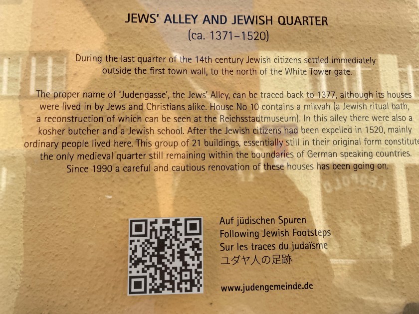 We visited the Judengasse (Jewish Ghetto Street) that dates back to 1377.