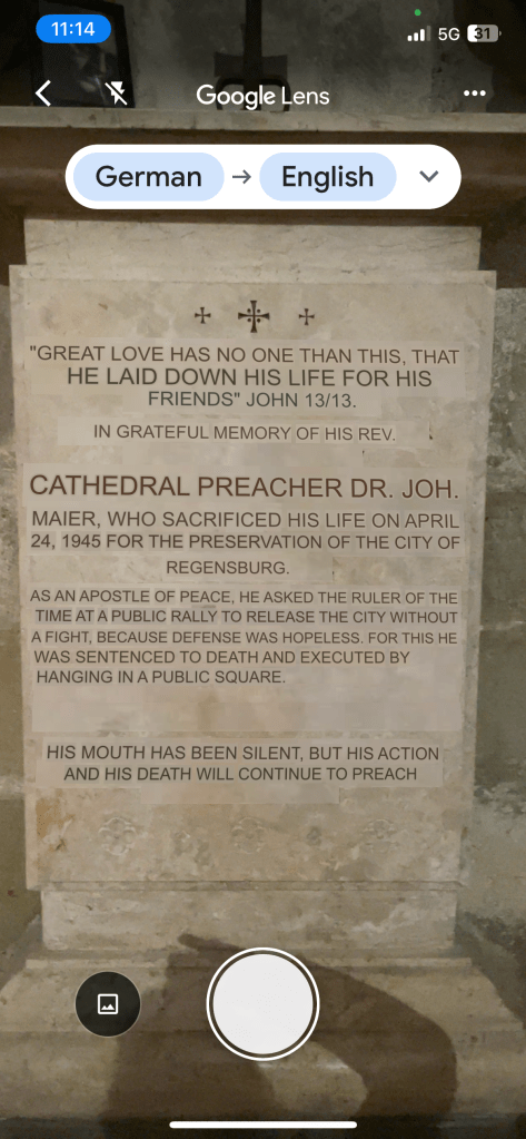 One of the first things we noticed on our wander was this particular Stolperstein for Dr. Johann Maier. Friday, when we visited the big beautiful cathedral, we learned more about who he was.