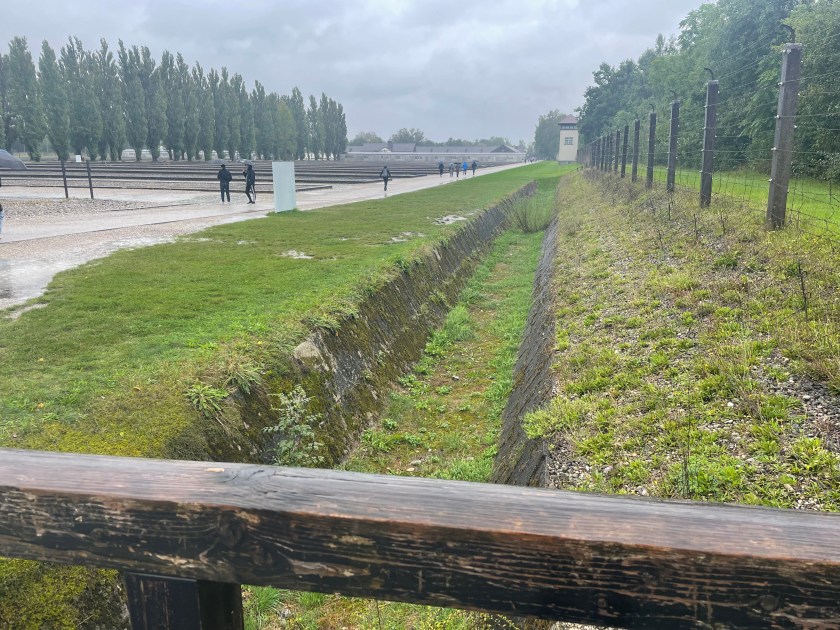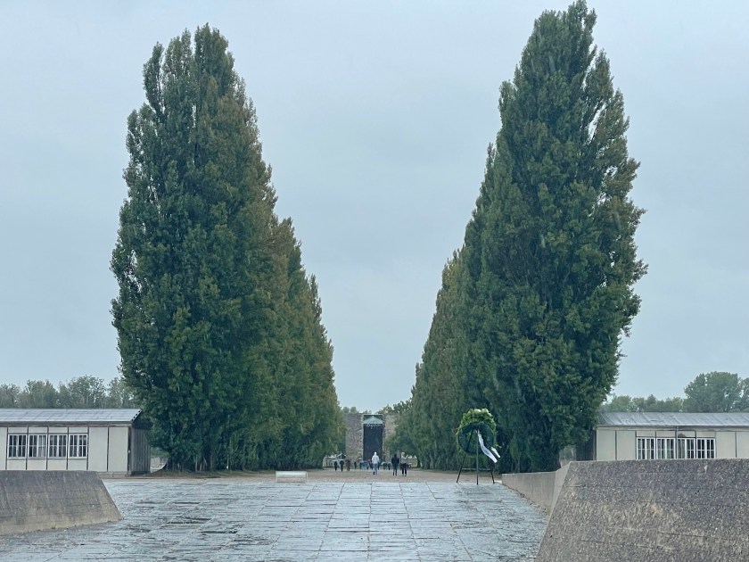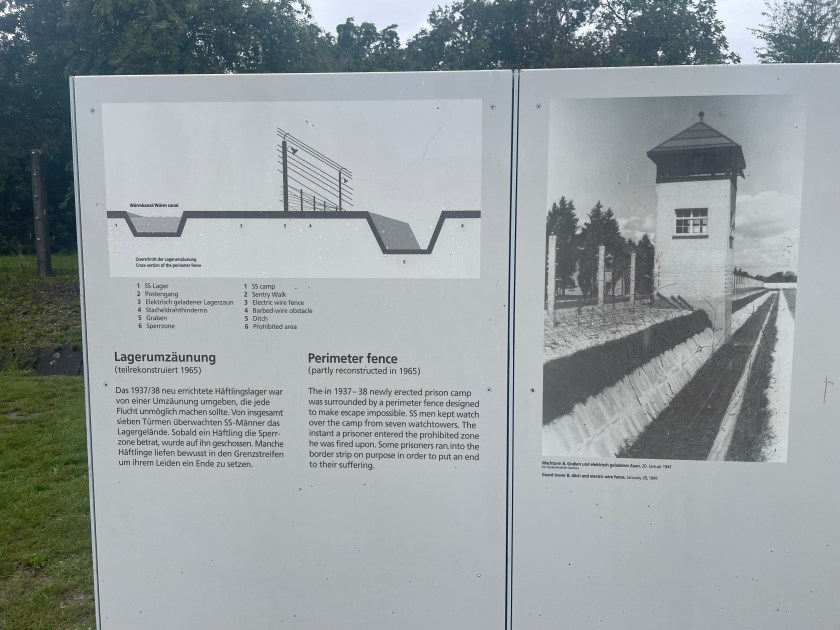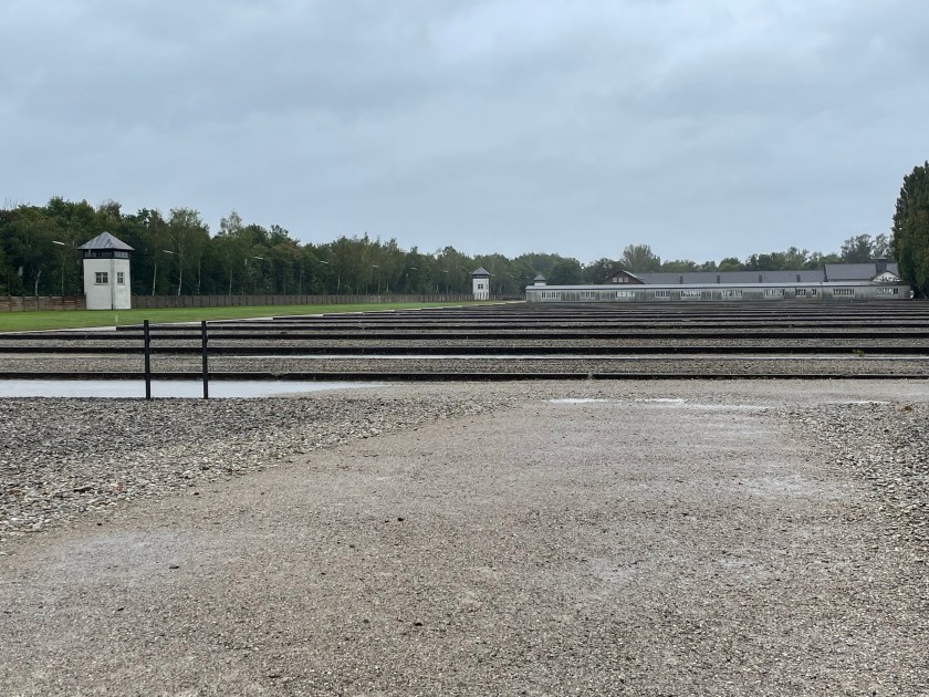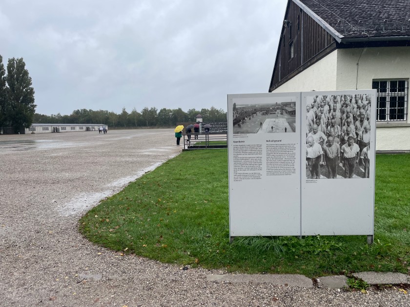Coming through the gates, the large field in front of us was were roll call was taken. Prisoners had to stand in lines for hours here. the building to the right is where they were checked in when they arrived. Now it’s a museum explaining life at Dachau and what was happening in the world at that time.
