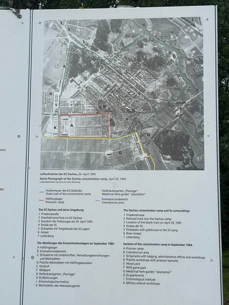 The green outline below is all of Dachau as it was. The red outline is the camp we visited where the prisoners were kept. The crematoriums were outside of this red area.