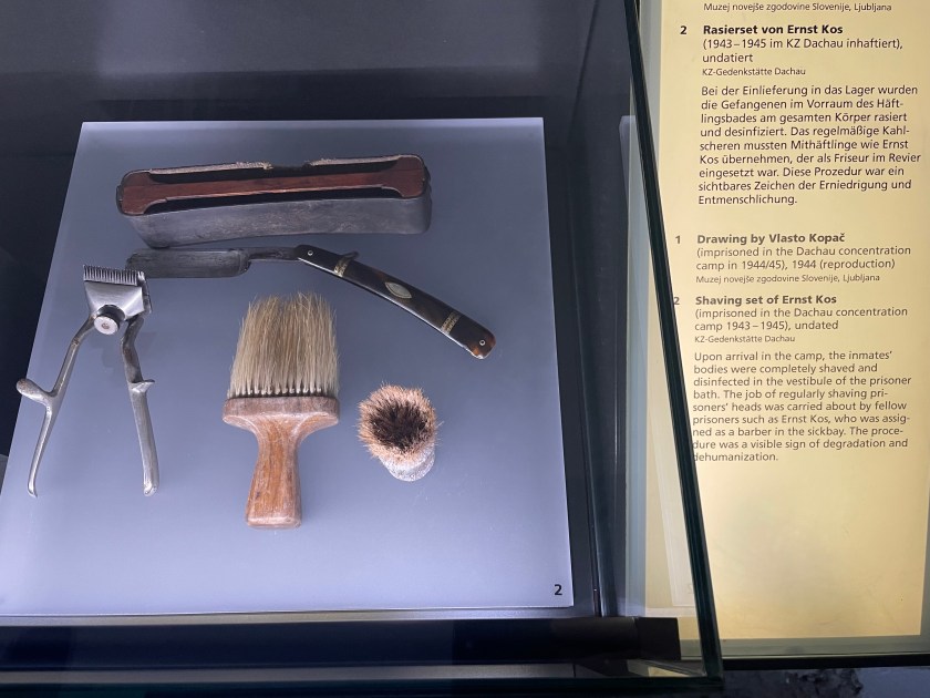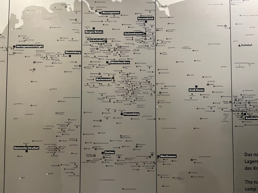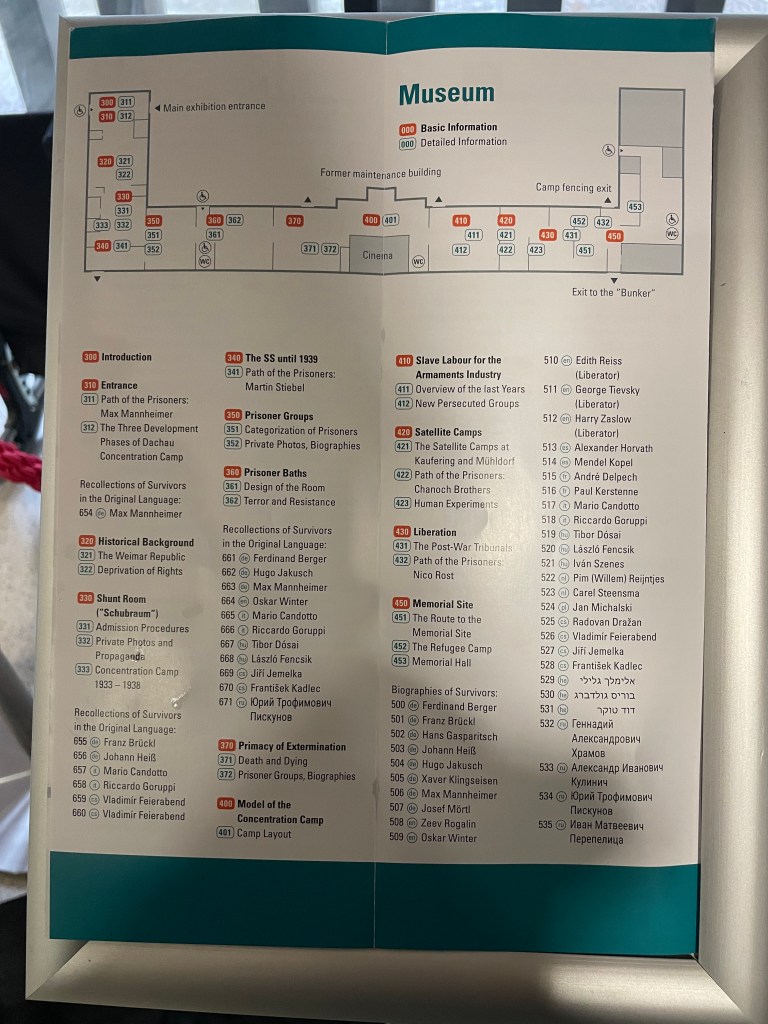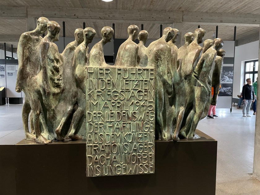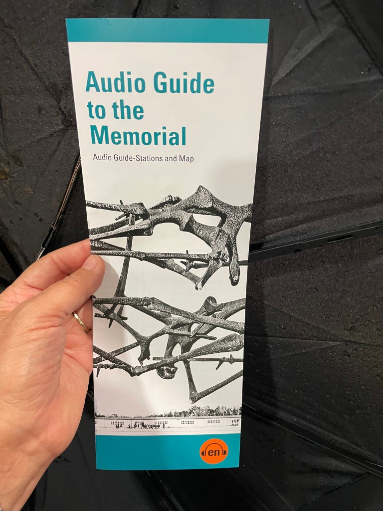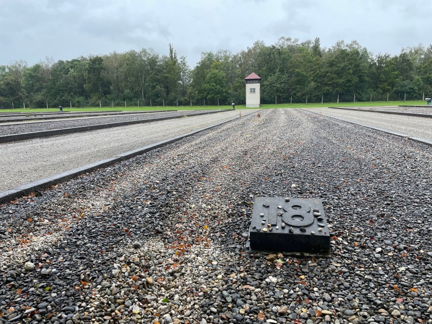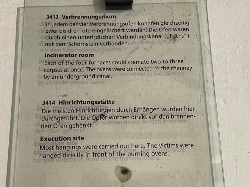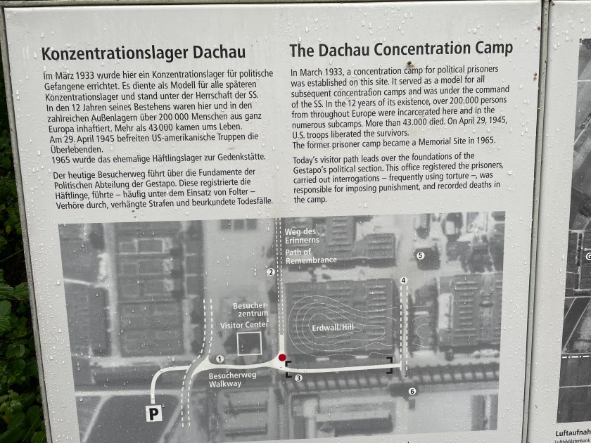 Here at Dachau, we followed what is called “The Path of Remembrance,” or the path the prisoners took as they arrived, lived and died here. We paid for audio devices that had numbers and messages to listen to at each place, in addition to all of the signs and printed information with photos telling the story here.