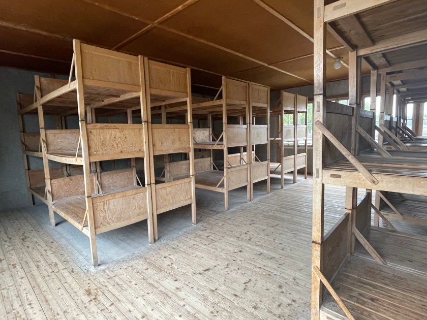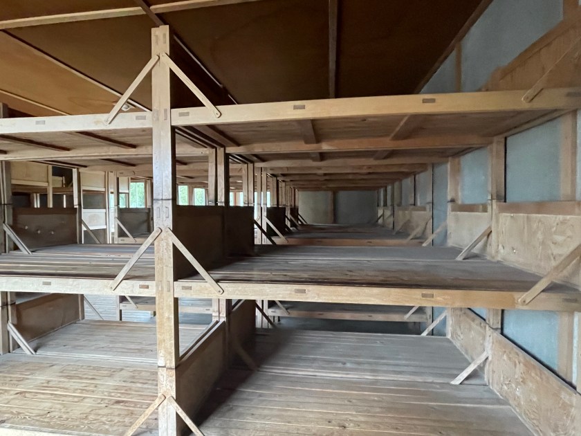 All of the bunkers were destroyed, except for their cement foundations. Two were rebuilt for visitors to see what they were like, filled with the bunks and with the toilet room and wash room. But the beds were clean and new, not as they were, infested, filled with straw-filled pads that absorbed human waste. The survivors described the smells and the problems with hygiene. The officials were brutal and so unkind, forcing them to scrub and clean every inch of the floors. Beds had to be made perfectly, or the guards went ballistic.