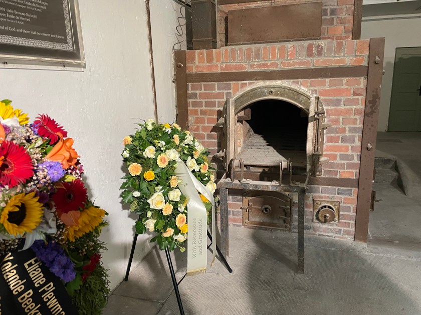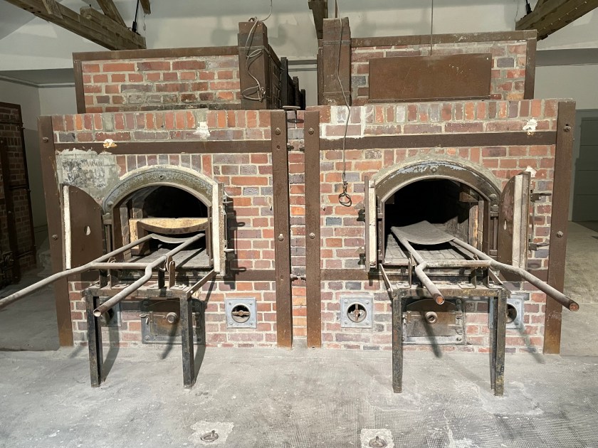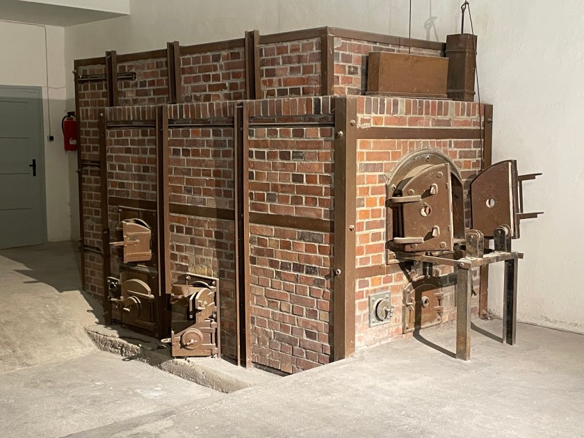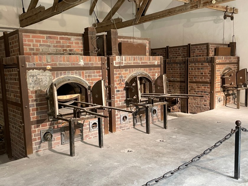 The first one built was small and not able to handle the workload. A second larger building with more ovens was added. Dachau wasn’t built for mass genocide like Auschwitz and Birkenau and other extermination camps. The ovens were used to dispose of all those who died or were killed. They didn’t fill rooms with people and gas them here. Maybe some of that happened, they’re not sure. Mostly the ovens were used to get rid of the bodies because it was easier than burying them.