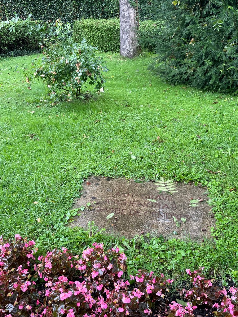 Outside the building is a park area for remembering and honoring those who died. Here is a gravestone to the thousands of unknown people who died here.