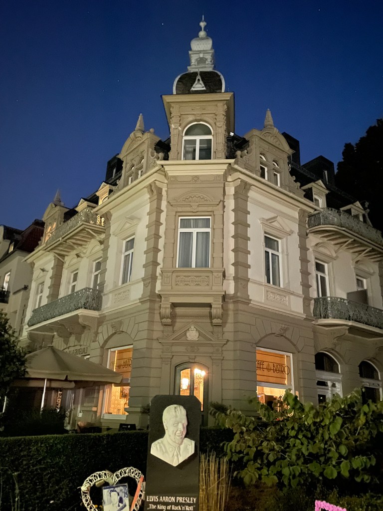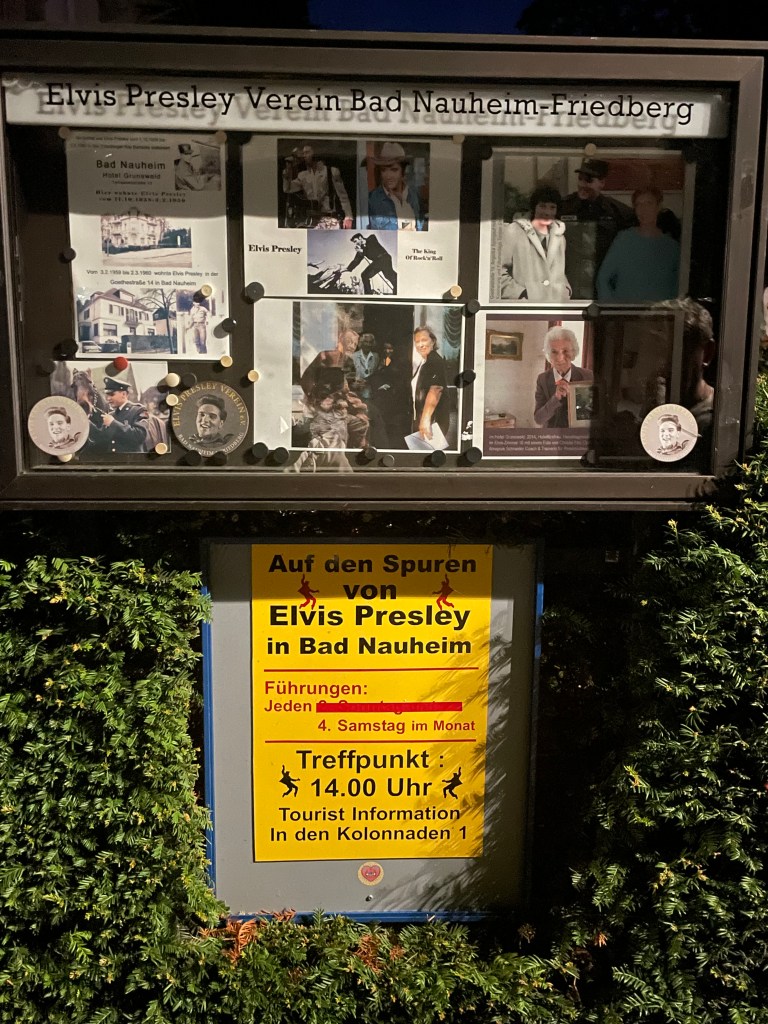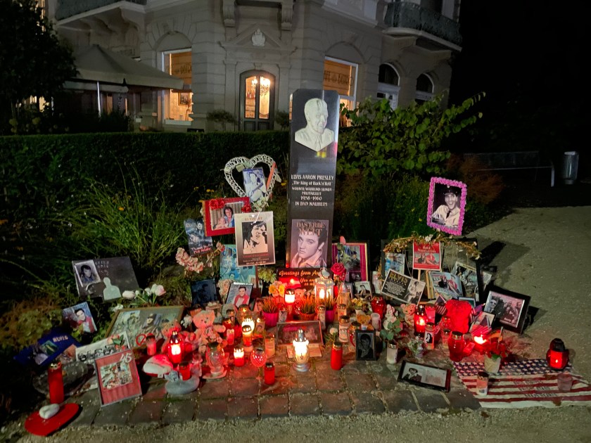 Elvis Presley lived here in this town from 1958-1960 when he was in the army. After a delicious Italian dinner, we walked to the hotel where he stayed. In front of the hotel is a candlelight memorial mounded on the ground where people burn candles, and lay flowers and gifts to the memory of Elvis.
