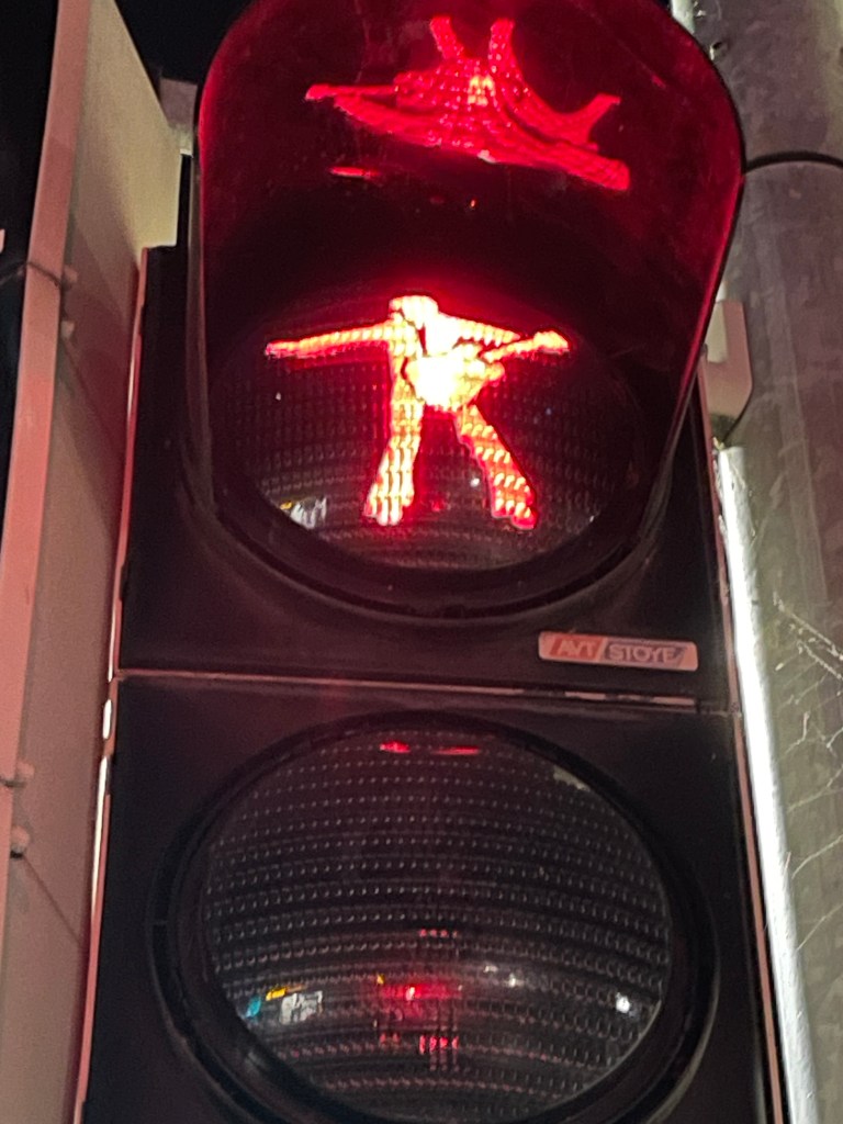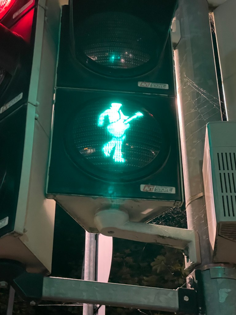 Even the traffic lights for pedestrian crossings honor Elvis!