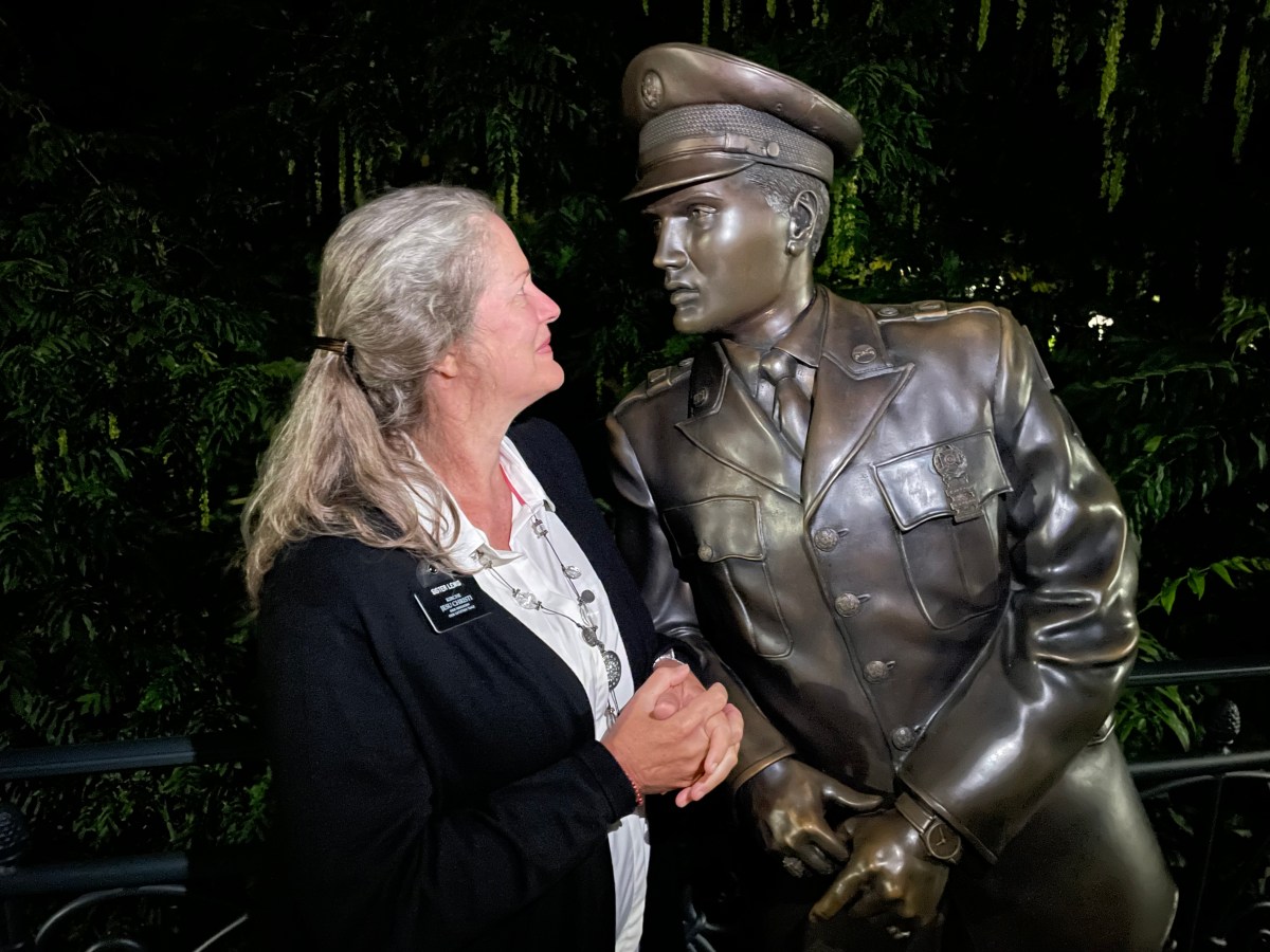 Even the traffic lights for pedestrian crossings honor Elvis!