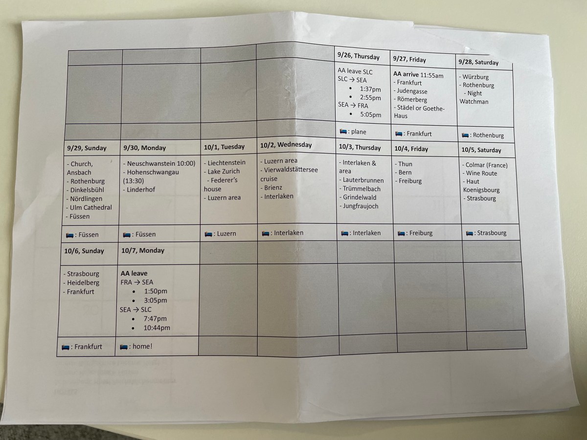 Our Trip Itinerary I’m going to post our itinerary here to show an overview of our travels while Aaron and Abbey visited. Share this: Click to share on X (Opens in new window) X Click to share on Facebook (Opens in new window) Facebook Like Loading... Related Author: Ann Laemmlen Lewis Thank you for visiting! I hope you enjoy the things shared here. View all posts by Ann Laemmlen Lewis