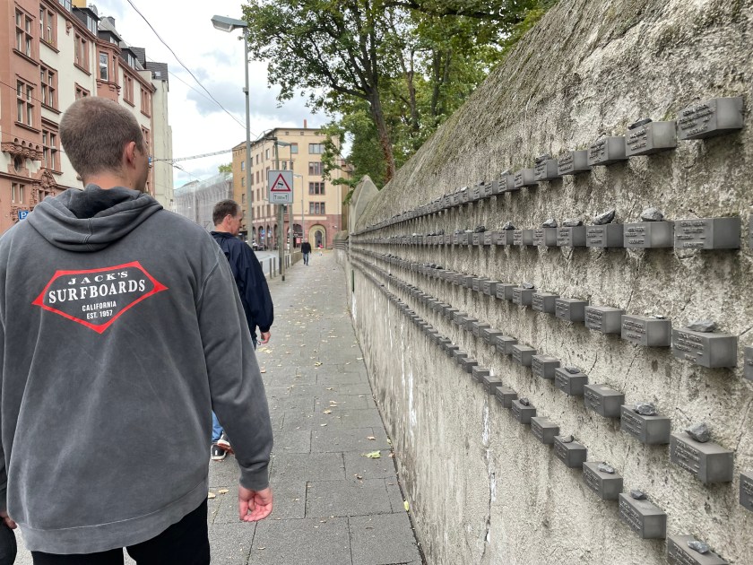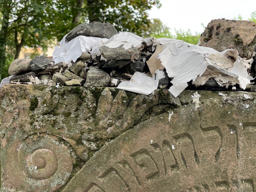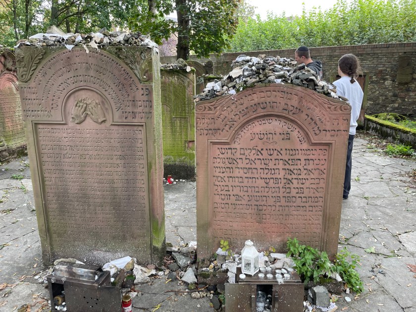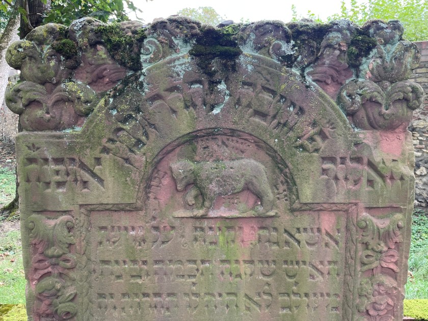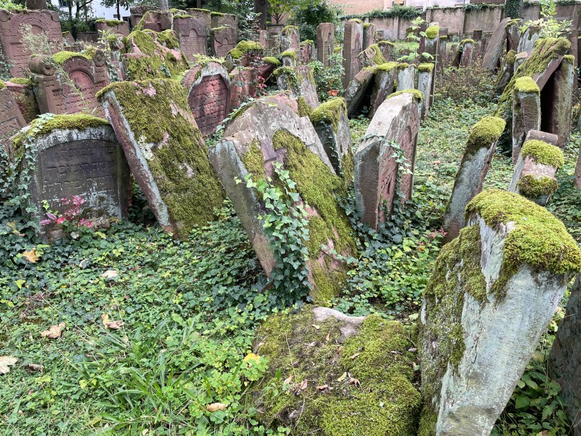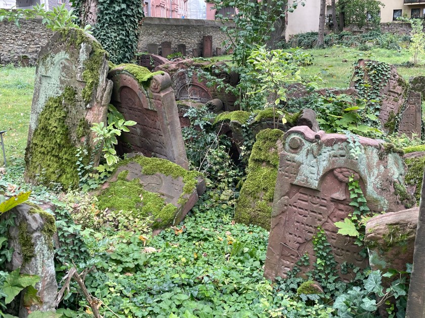 This afternoon we took the kids to visit the Jewish Cemetery behind the Judengasse Museum. It’s closed on Saturdays, so we’ve never been able to visit there until today. You have to go into the Museum and leave collateral to get the key to the cemetery, which is always locked. We were the only ones there and we were instructed to lock the gate in the wall behind us when we entered.