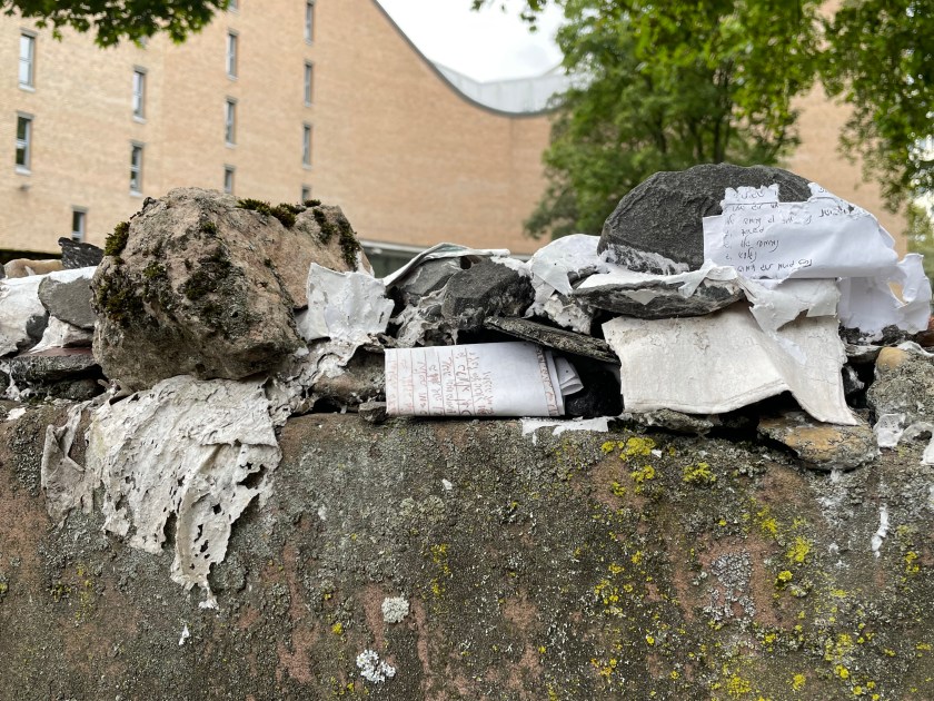 The cemetery was almost completely destroyed 1938-1942. In 1995, the outer wall was redesigned to be a memorial, with stone markers embedded all the way around memorializing the Jews who died during WWII.